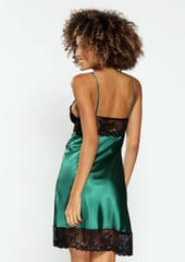 Jesteś fanką klasyki? Jeśli tak, to Halka Deyla będzie właśnie dla Ciebie! Haleczka posiada cienkie ramiączka oraz sięga przed kolana. Góra halki wykonana jest z przezroczystej, czarnej koronki w piękny, kwiatowy wzór. W miejscu biustu, pod koronką przyszyty jest satynowy materiał, aby co nieco zasłonić. Z tego samego materiału wykonany jest dół haleczki, który zakończony jest szerokim pasem z kwiatowej koronki. Halka Deyla dostępna jest w kolorze butelkowej zieleni, która doskonale współgra z czarną koronką. Na środku biustu oraz na początku regulowanych ramiączek przyszyte są malutkie, urocze kokardki. Czy Halka Deyla to halka dla Ciebie? Przed złożeniem zamówienia nie zapomnij o sprawdzeniu swojego rozmiaru w tabelce z wymiarami. W końcu poprawnie dobrana bielizna może zdziałać cuda! Poczuj się seksownie i kokieteryjnie, mając na sobie bieliznę od Dkaren. Życzymy cudownych chwil z ukochaną osobą!