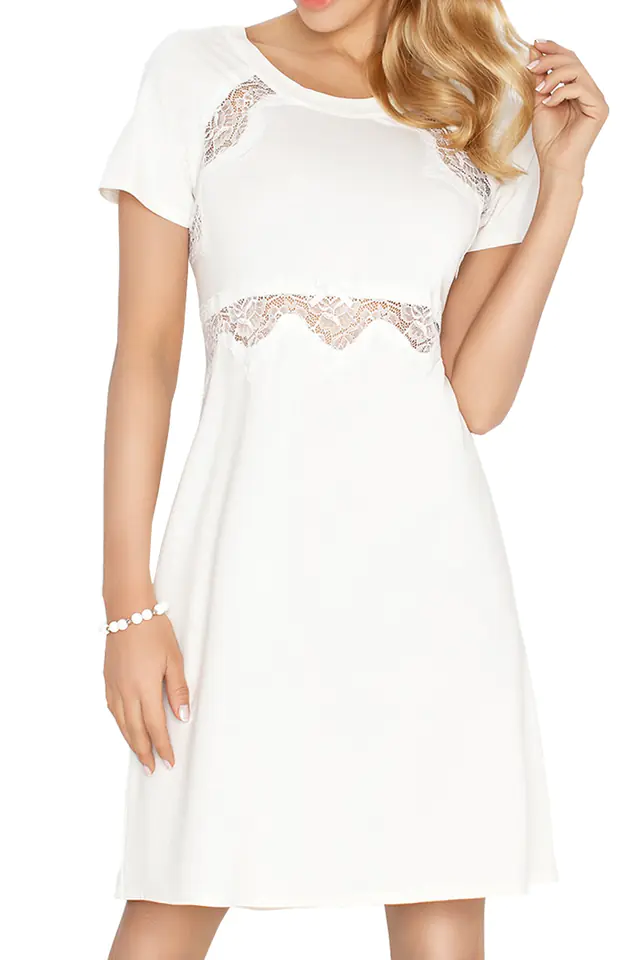 HALKA Z WISKOZY Z KRÓTKIM RĘKAWEM. NA DEKOLCIE I POD BIUSTEM ECRU KORONKA.