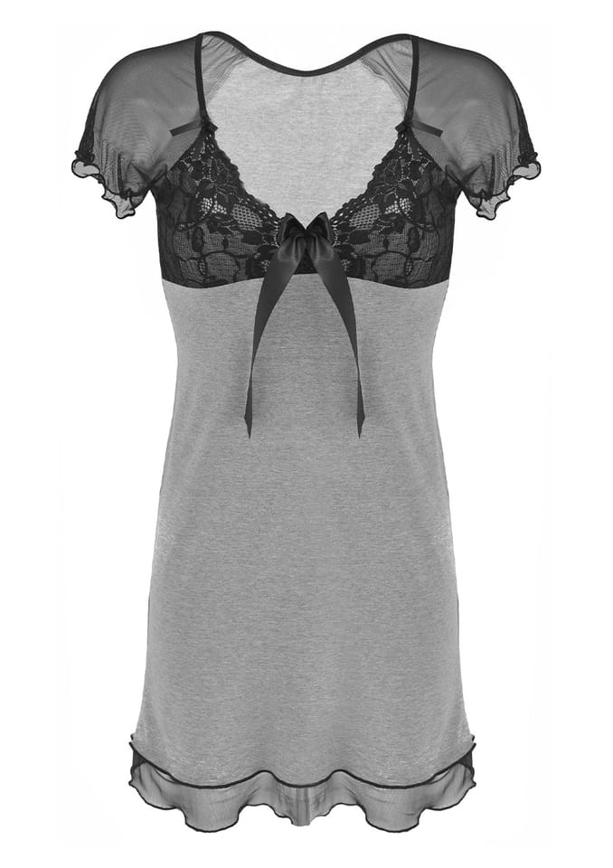 KOSZULKA Z KRÓTKIM RĘKAWEM USZYTA Z WISKOZY. MISECZKI PROFILOWANE Z HAFTOWANEJ KORONKI PODSZYTEJ WISKOZĄ. NA PRZODZIE OZDOBNA KOKARDKA. RĘKAWY TIULOWE. DÓŁ OZDOBIONY TIULOWĄ FALBANKĄ. SKŁAD SUROWCOWY: 92% WISKOZA 8% ELASTAN