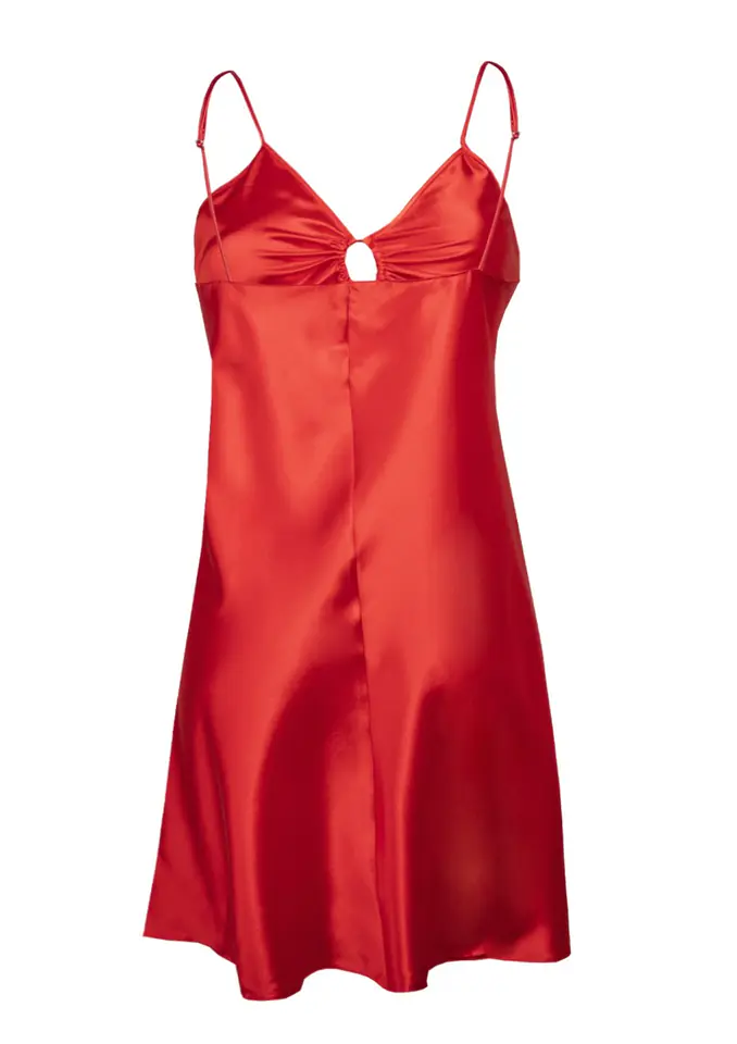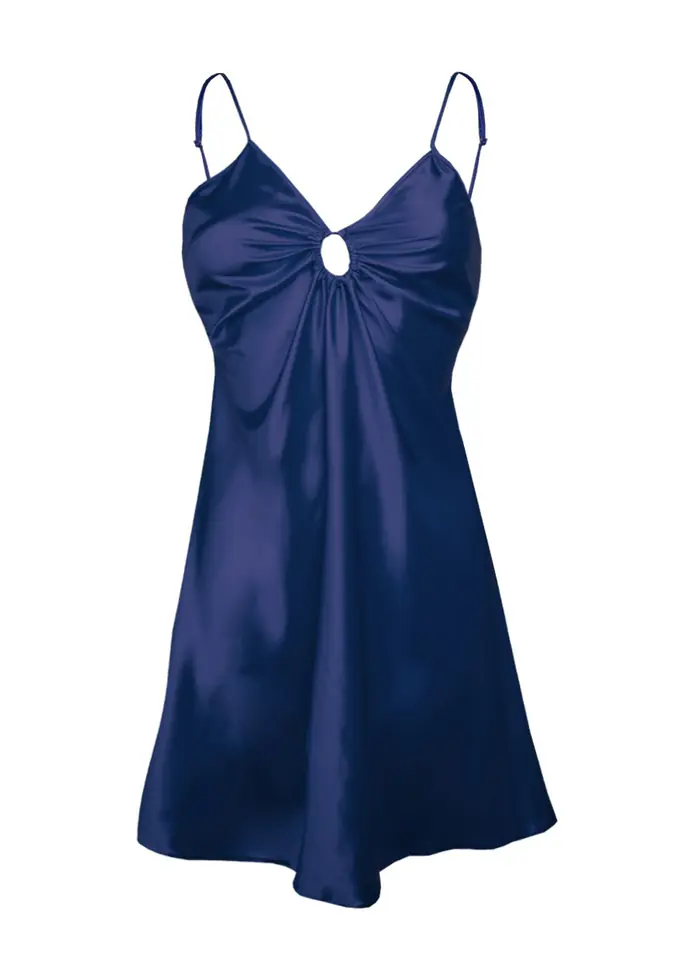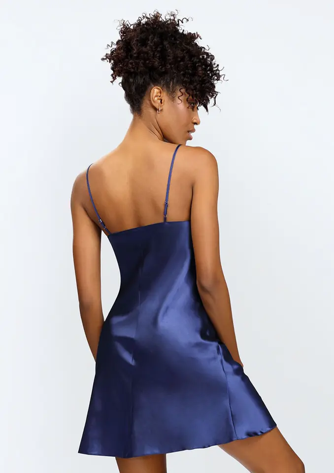 Halka Kamaria to krótka satynowa koszulka nocna o okrągłym splocie przy dekolcie, które podkreśla pięknie biust. Cienkie, regulowane ramiączka zwężane ku górze pozwalają dostosować długość do naszych preferencji. Halka Kamaria jest świetną propozycją na noc. Satynowy materiał zapewnia doskonały komfort snu. Halka dostępna jest w czterech kolorach: czarnym, czerwonym, granatowym oraz białym.