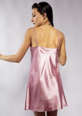 GŁADKA HALKA USZYTA ZE ZWIEWNEJ SATYNY. PRZÓD HALKI TWORZY DELIKATNY TRÓJKĄTNY DEKOLT. RAMIĄCZKA SĄ CIENKIE I REGULOWANE.