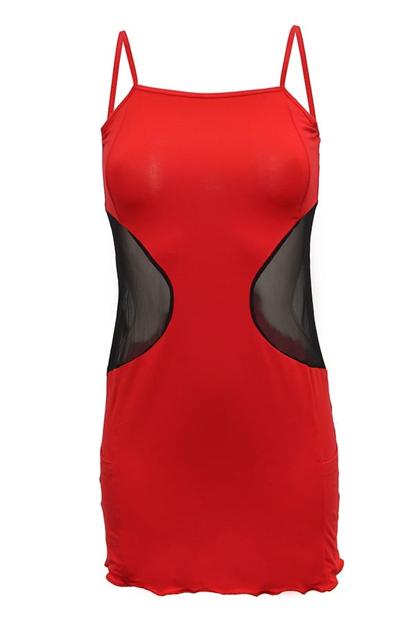 WISKOZOWA HALKA, PO BOKACH DWA TIULOWE WYCIĘCIA ORAZ NA DOLE MAŁE KIESZONKI. RAMIĄCZKA CIENKIE REGULOWANE.