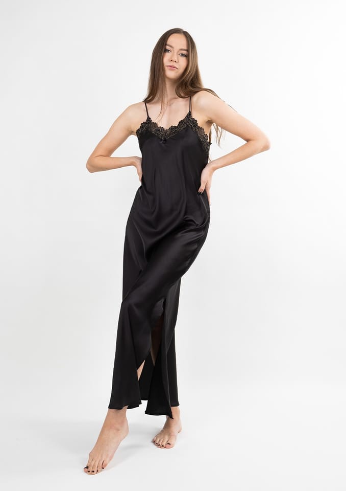 Długa halka Rut to propozycja dla kobiet, które cenią sobie nie tylko komfort, ale również estetykę na najwyższym poziomie. Jej projekt powstał z myślą o nocnej bieliźnie, która nie musi być nudna – może być luksusowa, starannie wykonana i niesamowicie kobieca.