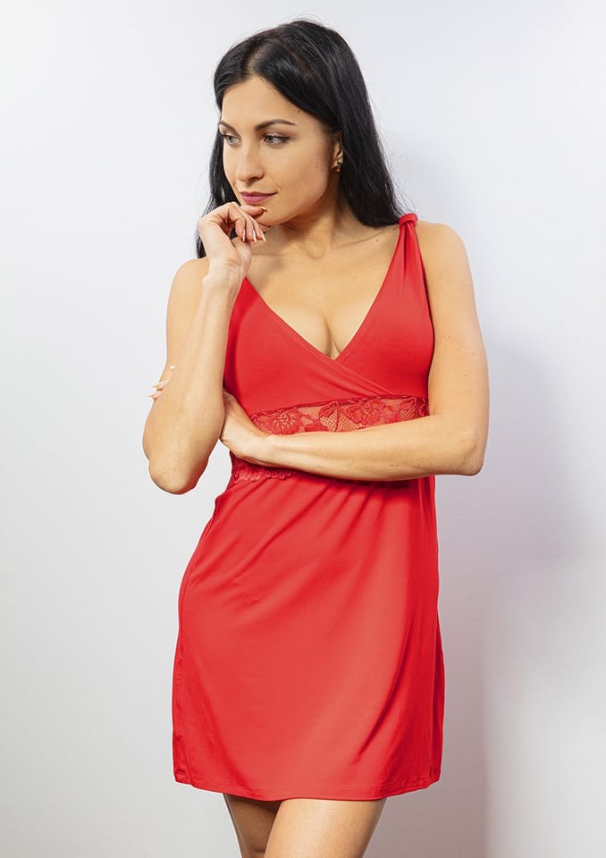 HALKA WYKONANA Z BARDZO PRZYJEMNEJ WISKOZOWEJ TKANINY DELIKATNA KORONKA NA DEKOLCIE DODAJE HALECZCE ROMANTYZMU LINIĘ BIUSTU ODCINA WSZYTA KORONECZKA
