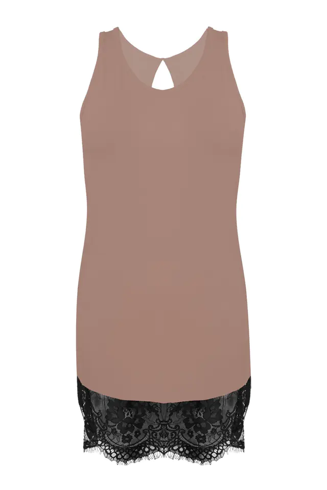 KLASYCZNA PROSTA WISKOZOWA HALECZKA BEZ REGULOWANYCH RAMIONCZEK. IDEALNIE DOPASOWUJE SIĘ DO KSZTAŁTÓW CIAŁA. DÓŁ WYKOŃCZONY DELIKATNĄ KORONKĄ.