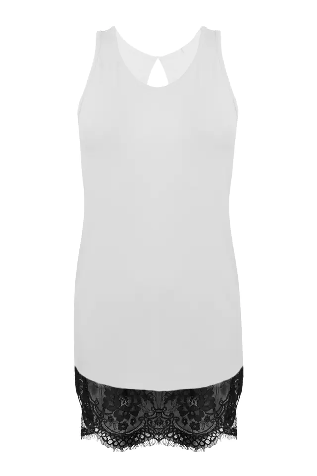 KLASYCZNA PROSTA WISKOZOWA HALECZKA BEZ REGULOWANYCH RAMIONCZEK. IDEALNIE DOPASOWUJE SIĘ DO KSZTAŁTÓW CIAŁA. DÓŁ WYKOŃCZONY DELIKATNĄ KORONKĄ.