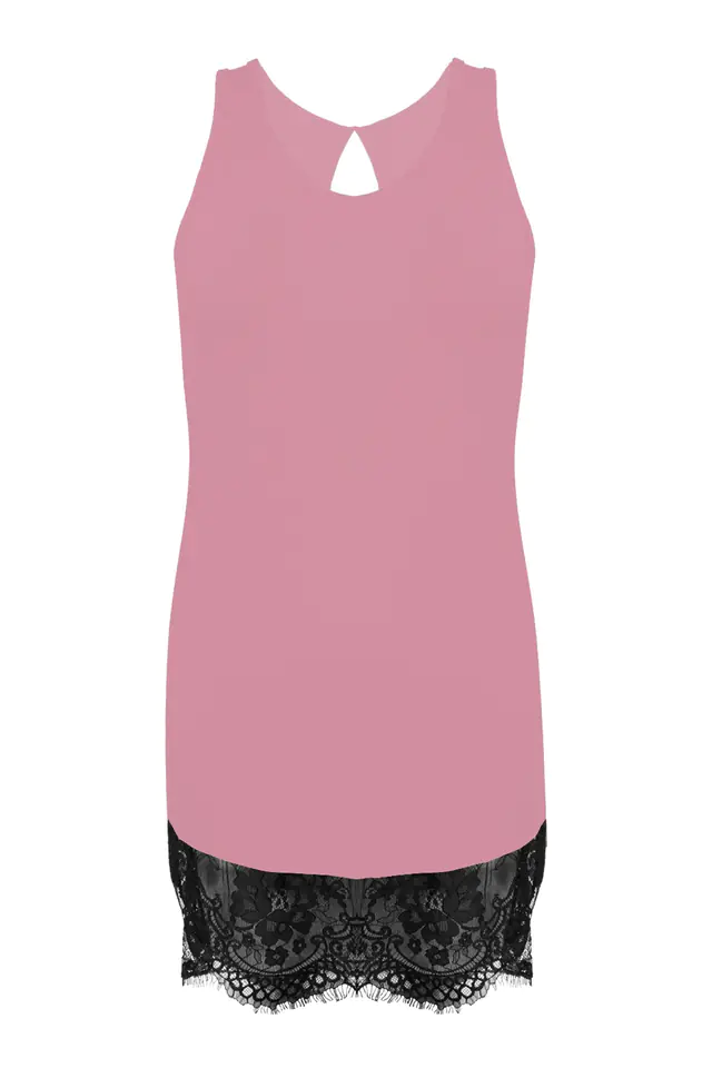 KLASYCZNA PROSTA WISKOZOWA HALECZKA BEZ REGULOWANYCH RAMIONCZEK. IDEALNIE DOPASOWUJE SIĘ DO KSZTAŁTÓW CIAŁA. DÓŁ WYKOŃCZONY DELIKATNĄ KORONKĄ.