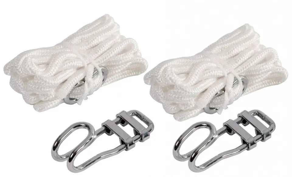 Kompletny zestaw do mocowania w hamaku. Zestaw składający się z dwóch haków stalowych z dwoma przewodami 3,8 m każdy. Posiada dwa solidnie wykonane stalowe haki. Maksymalne obciążenie wynosi 160kg.