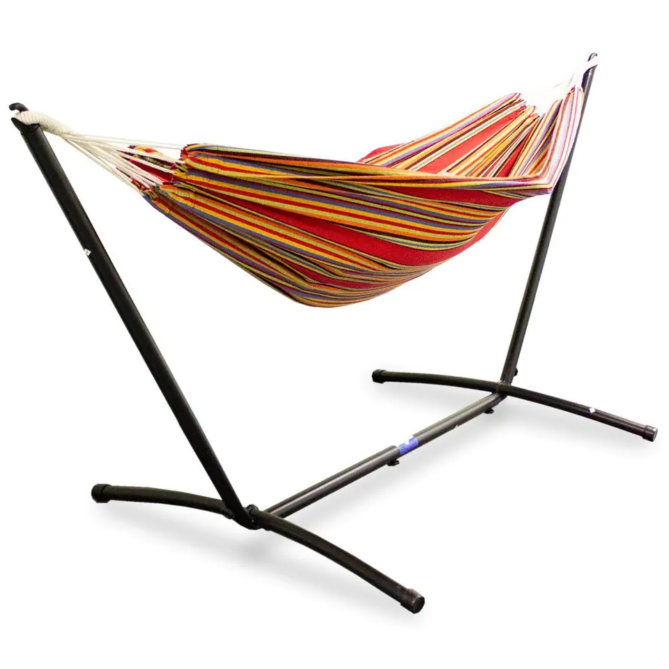 Ten wygodny i funkcjonalny hamak pozwoli Ci odpocząć i cieszyć się czasem spędzonym w ogrodzie. Nie potrzebujesz drzewka, ponieważ w zestawie znajduje się odpowiednia, stabilna, stalowa rama. Materiał idealnie dopasowuje się do ciała i sprawia, że pozycja leżenia jest niezwykle komfortowa i zapewnia stuprocentowy relaks. Metalowy stelaż wykonany jest bardzo starannie, dlatego długo posłuży Tobie i Twojej rodzinie.