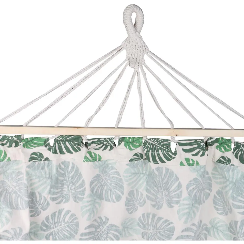 - klasyczna budowa i bardzo dobrej jakości materiał zapewni komfort wypoczynku przez wiele sezonów łatwy i prosty w montażu wystarczy go przypiąć do dwóch stałych punktówmocny drewniany drążek o dł. 120 cm podtrzymuje odpowiednio materiał i pozwala wygodnie się na nim położyćwesoła kolorystyka nawiązująca do tropików pozwoli poczuć się jak na rajskiej plażyprzewiewny materiał zapobiegnie przegrzaniu się ciała i odprowadzi parę wodnązapewni słodkie lenistwo tobie i partnerowi lub dzieciom bo jego udźwig to 160 kg!