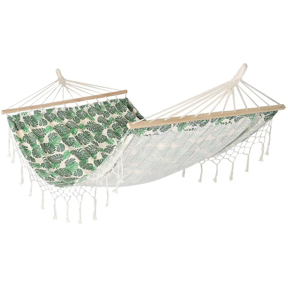 Nasz HAMAK OGRODOWY 2 OSOBOWY 200X150CM Z DRĄŻKIEM I Z FRĘDZLAMI MIAMI NATURA JUNGLE to doskonały wybór na leniwe, letnie popołudnie w ogrodzie.
