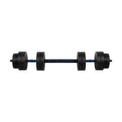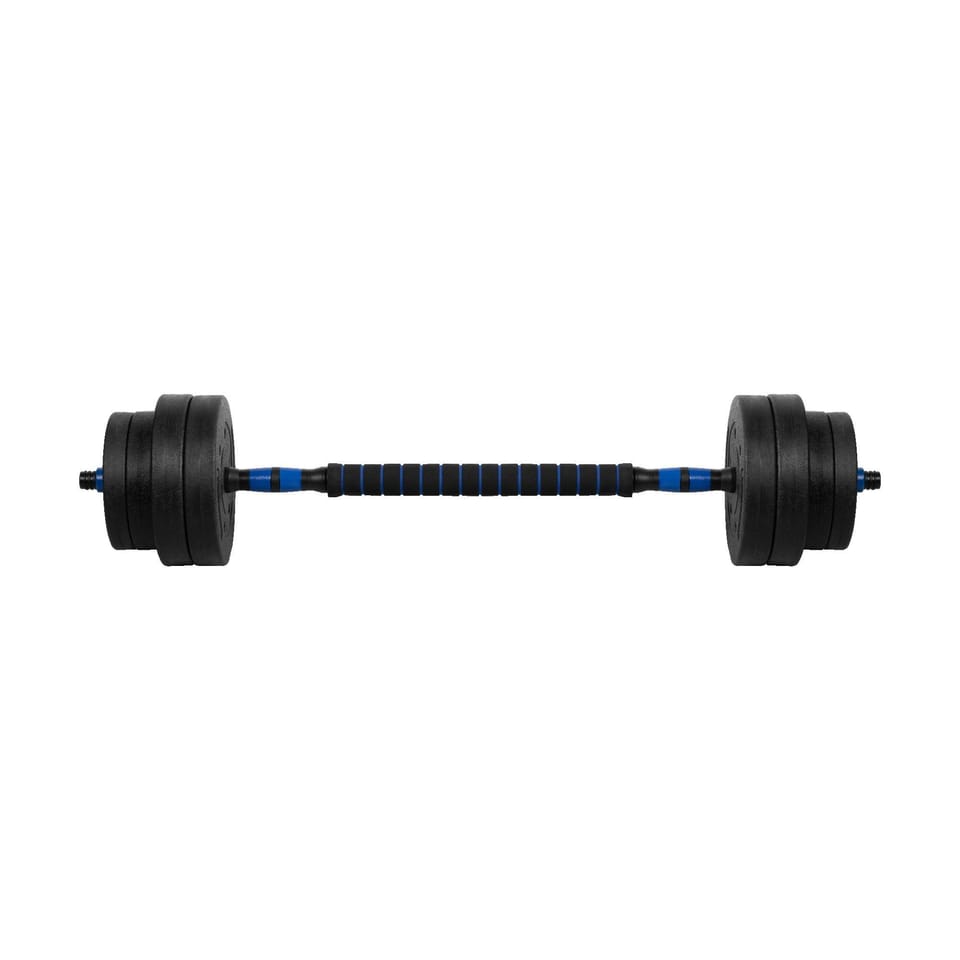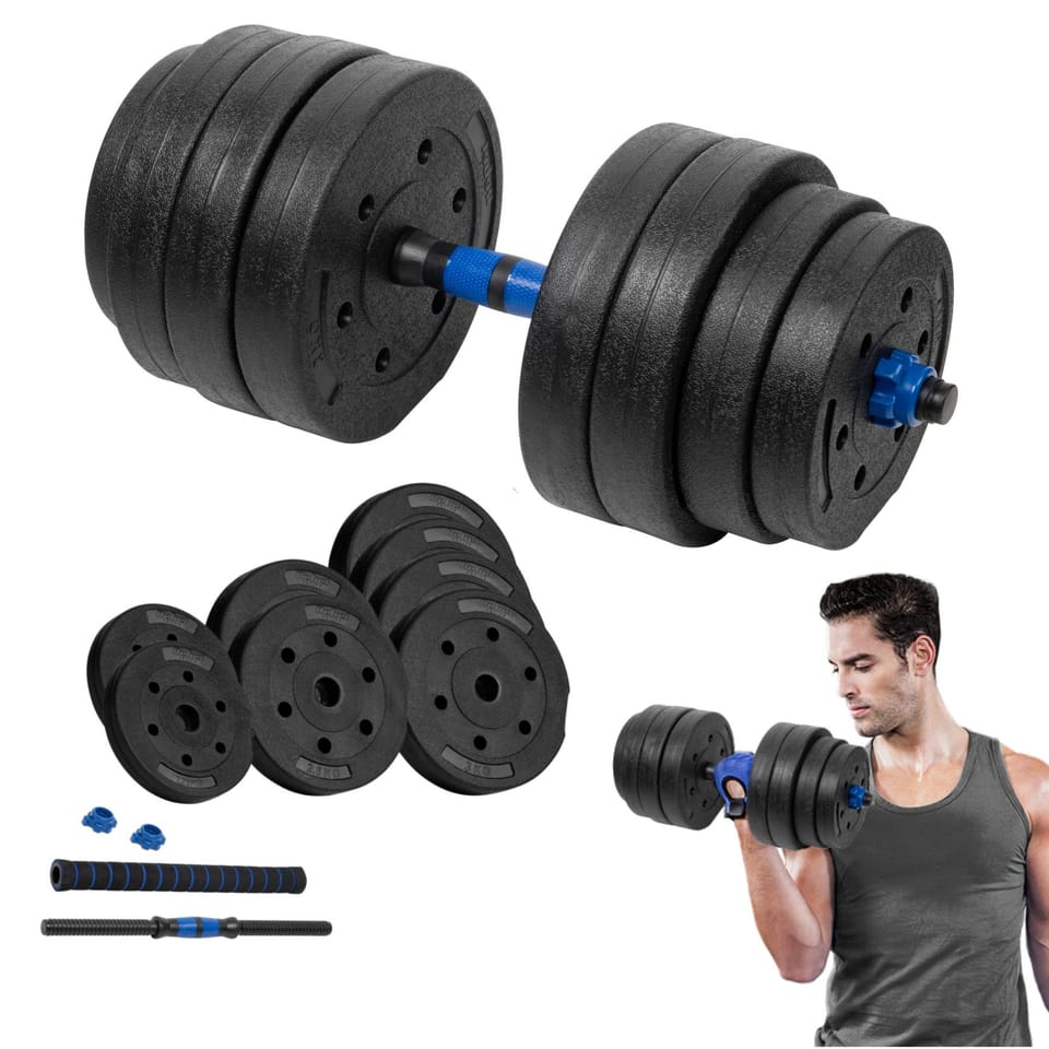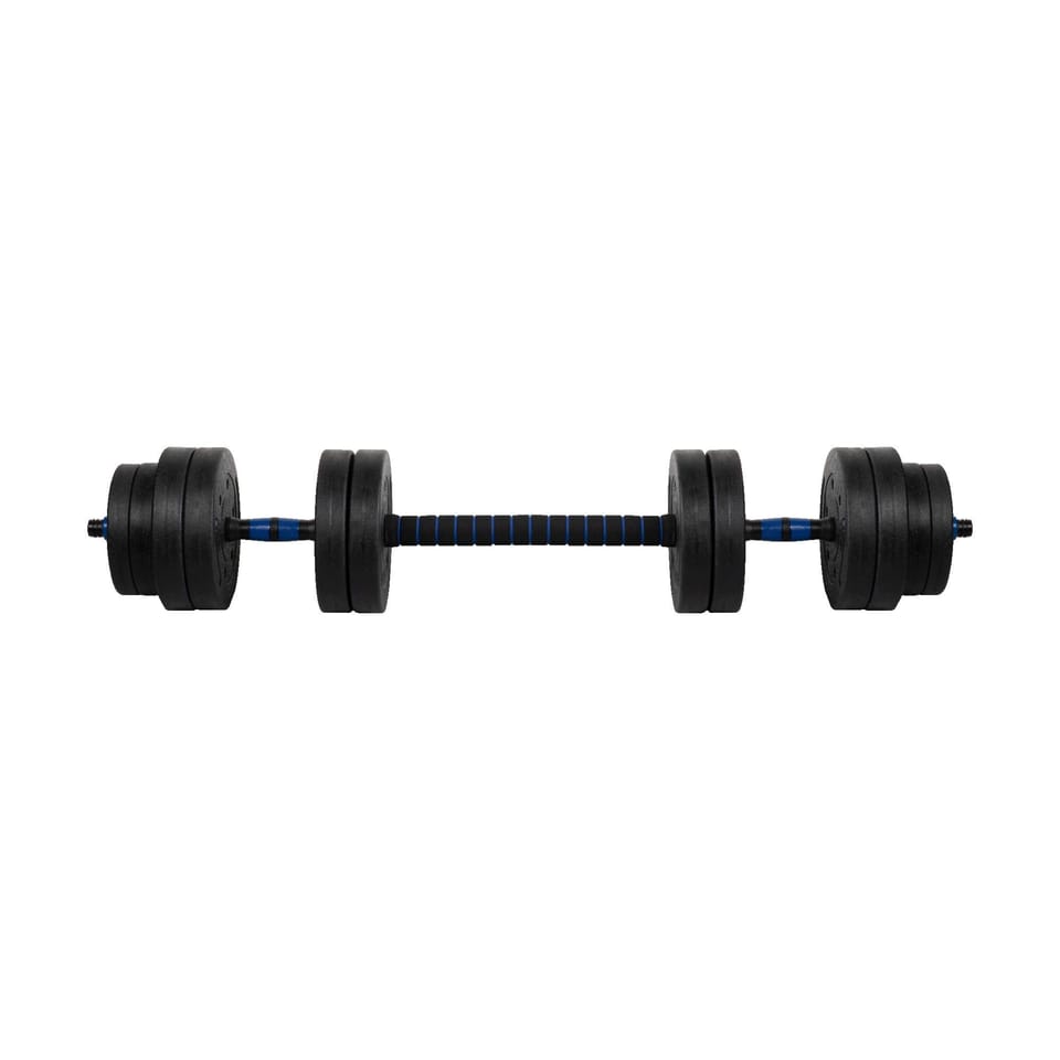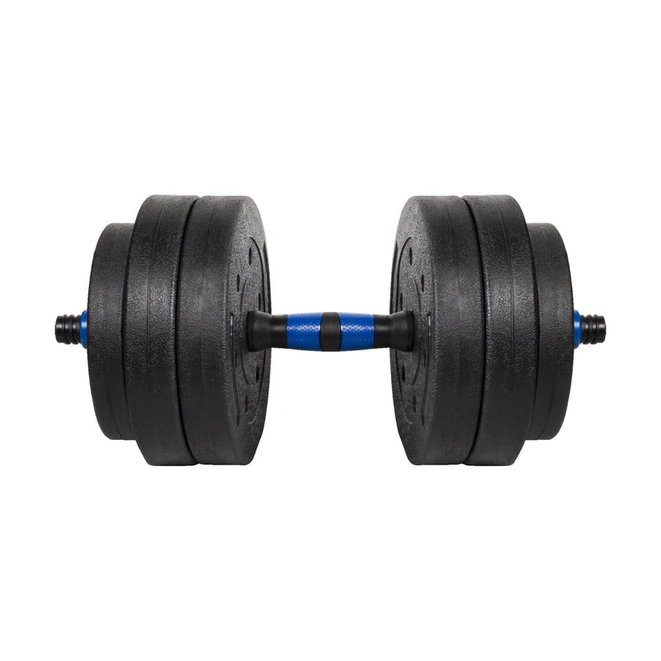 Ilość obciążeń w zestawie: 2x1,25 kg, 2x2,5 kg, 4x3 kgWaga zestawu: 20 kgŚrednica otworu: 28 mmZawartość zestawu: - 2x 1,25 kg (średnica x grubość): 18 cm x 30 mm - 2x 2,5 kg (średnica x grubość): 21,5 cm x 38 mm - 4x 3 kg (średnica x grubość): 22,5 cm x 42 mm - 1x gryf (długość x średnica): 51 cm x 25 mm - 1x łącznik (długość x średnica): 40 cm x 40 mm - 2x nakrętka (średnica): 25 mm