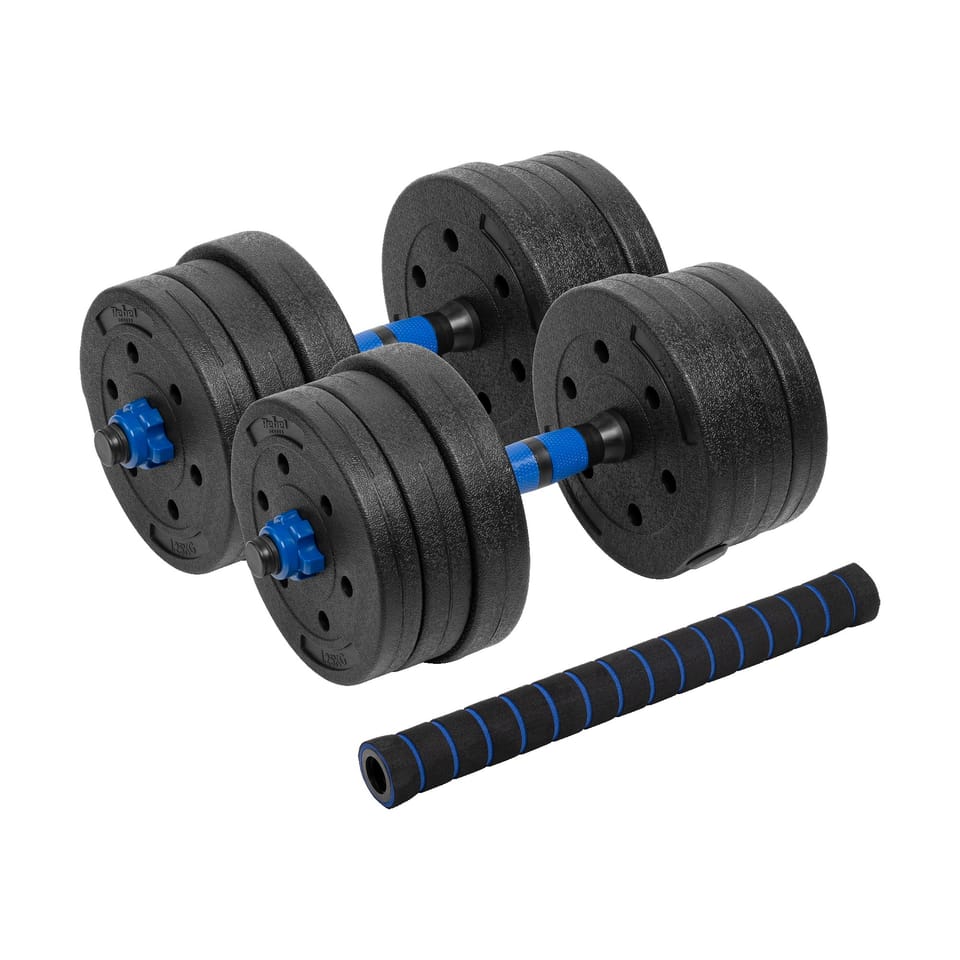 Ilość obciążeń w zestawie: 4x1,25 kg, 4x1,5 kg, 4x2 kgWaga zestawu: 20 kgŚrednica otworu: 28 mmZawartość zestawu: • 4 x 1,25 kg (średnica x grubość): 18 cm x 30 mm • 4 x 1,5 kg (średnica x grubość): 18 cm x 34 mm • 4 x 2 kg (średnica x grubość): 19,5 cm x 37 mm • 2 x gryf: • długość: 40 cm • średnica części chwytnej: 33 mm • średnica części na obciążenia: 25 mm • 1 x łącznik (długość x średnica): 40 cm x 40 mm • 4 x nakrętka (średnica): 25 mm