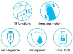 Intuicyjny panel sterowania umożliwia wybor spośrod 12 programow pracy – obejmujących zarowno pulsacje, jak i wibracje. Model wyposażono w praktyczną blokadę podrożną, ktora zapobiega przypadkowemu uruchomieniu podczas transportu. Ładowanie odbywa się za pomocą kabla USB, a długi czas pracy pozwala na komfortowe użytkowanie bez częstego ładowania.