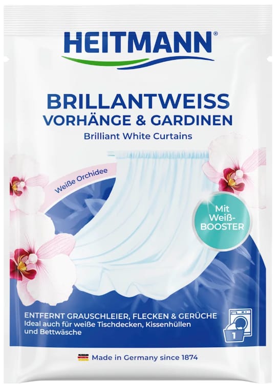 Chcesz, aby Twoje firany wyglądały jak nowe? Heitman Brillantweiss to dodatek do proszku do prania, który przywraca tkaninom olśniewającą biel i usuwa szarą mgłę, żółknięcie oraz uporczywe plamy. Teraz Twoje firany będą świeże, jasne i pełne życia po każdym praniu.
