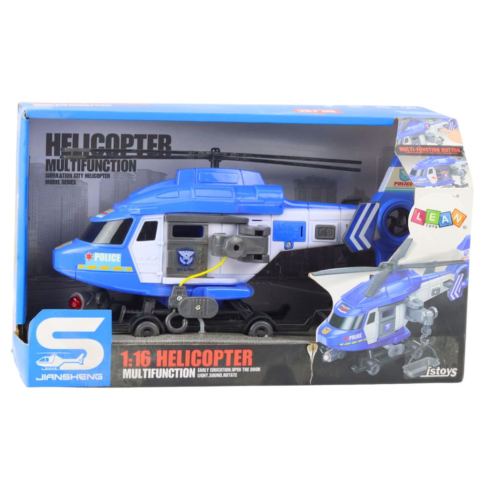 Helikopter wyposażony jest w efekty świetlne i dźwiękowe, które uruchamiane są za pomocą przycisków. Dzięki nim zabawa staje się jeszcze bardziej realistyczna, a dzieci mogą poczuć się jak prawdziwi piloci policyjnej maszyny. Model posiada także obrotowe śmigła, które dodają autentyczności podczas zabawy oraz kółka, dzięki którym może poruszać się po powierzchni.