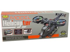 Helikopter utrzymany jest w szarych, ciemnych barwach, co ułatwia kamuflaż, pozwalający na ukrycie się groźnemu przeciwnikowi. Wszelkie elementy wykonane są z dbałością o najmniejszy detal, co z pewnością uprzyjemni zabawę każdemu chłopcu. Wykonany z atestowanego, solidnego materiału, jakim jest plastik. Na skrzydłach i całej obudowie widnieją naklejki wojskowe. Posiada ogromne, obrotowe skrzydła świecące w najróżniejszych kolorach. Efektom świetlnym towarzyszą również dźwiękowe, takie jak odgłos startowania, strzelania. Pod spodem helikoptera zamontowane są kółka, dzięki którym helikopter się porusza.