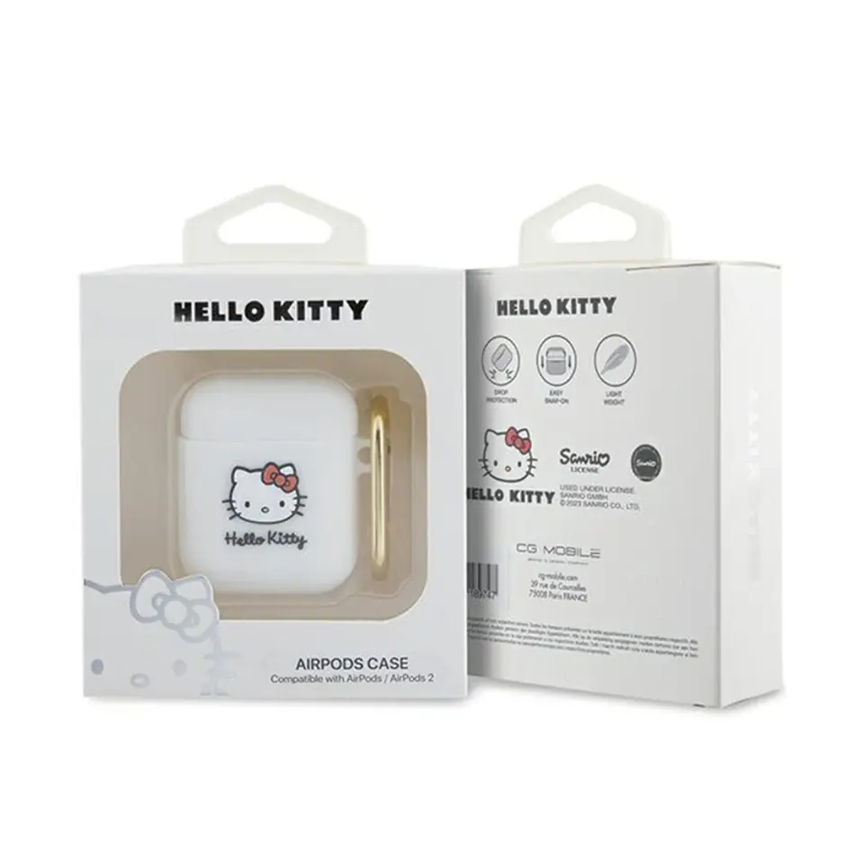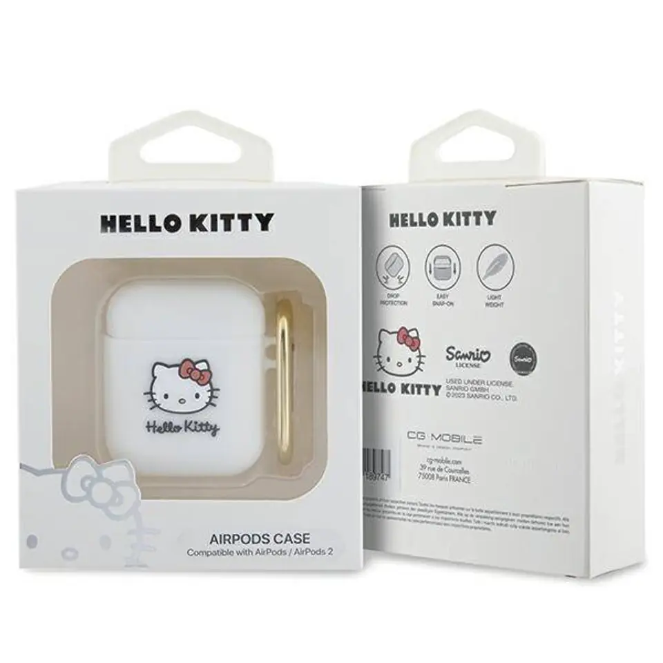 Hello Kitty Silicone 3D Kitty Head - Etui AirPods 1/2 gen biały