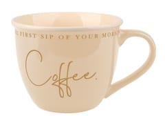 HENDIA Kubek jumbo 500ml z eleganckim napisem Coffee w nowoczesnym styluSzukasz kubka, który nie tylko pomieści dużą ilość napoju, ale także będzie piękną ozdobą Twojej kuchni? HENDIA Kubek jumbo 500ml to idealne rozwiązanie, łączące funkcjonalność z estetyką. Ciepły odcień beżu i subtelne złote napisy tworzą wyjątkowy element w Twoim codziennym rytuale porannej kawy.Kluczowe cechyPojemność 500 ml idealna do dużych porcji napojuWykonanie z wysokiej jakości porcelany, która zachwyca trwałościąMożliwość mycia w zmywarce, co ułatwia utrzymanie czystościBezpieczny do użycia w mikrofalówce, co daje wygodęElegancki design z ciepłym odcieniem beżu i złotymi detalamiDlaczego warto wybrać kubek HENDIA?Kubek HENDIA wyróżnia się eleganckim wyglądem, który pasuje do każdego wnętrza. Złote napisy oraz delikatny odcień beżu sprawiają, że jest on nie tylko praktycznym naczyniem, ale także doskonałą dekoracją stołową. Dzięki dużej pojemności zmieści wszystkie poranne napoje - od kawy po herbatę. To idealny wybór dla każdego miłośnika komfortowych rozwiązań.