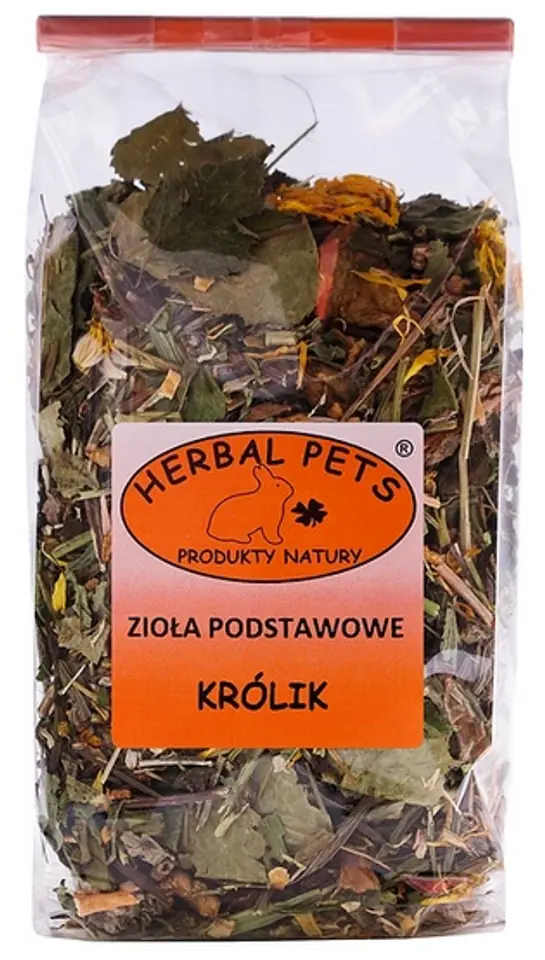 Zioła podstawowe - królikZioła podstawowe dla królika stanowią bogate źródło witaminy C, B, K, mikroelementów oraz składników mineralnych.Substancje zawarte w ziołach podstawowych regulują metabolizm, ułatwiają trawienie i przyswajanie składników pokarmowych, oczyszczają i odtruwają organizm z substancji toksycznych, zwiększają odporność organizmu na robaczyce, zakażenia bakteryjne, nowotwory i choroby skóry.Mieszanka paszowa uzupełniająca dla królików.Skład: korzeń cykorii, kora wierzby, babka lancetowata, melisa, kwiat nagietka, ziele mniszka, krwawnik, ziele topinamburu, pokrzywa, mięta, rumianek, liść brzozy.Składniki analityczne: białko surowe 10,3%; tłuszcz surowy 1,5%; włókno surowe 25,2%; popiół surowy 8,0%
