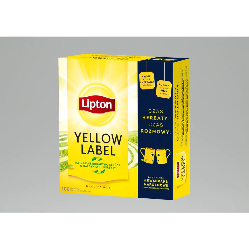 Posmakuj slonca w kazdej filizance herbaty Lipton Yellow Label wypelnionej bogactwem smaku i aromatu. Tworzymy ją ze świezo zbieranych mlodych listków, które dojrzewają w sloncu równikowych ogrodów herbacianych. Dzieki temu, kazda torebka herbaty Lipton jest pelna slonca, któremu zawdziecza swój niepowtarzalny, zachwycająco świezy smak i bogaty aromat. Sloneczna chwila przyjemności z Lipton Yellow Label rozjaśni Twój dzien i odkryje przed Tobą to, co naprawde wazne.