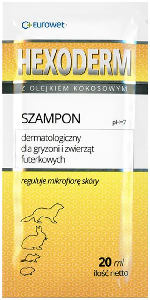 Hexoderm dla gryzoni i zwierząt futerkowych jest dermokosmetykiem weterynaryjnym, regulującym mikroflorę skóry, stabilizującym jej pH oraz zapobiegającym wysuszaniu poprzez pozostawienie cienkiej warstwy tłuszczowo-białkowej. Zawarte w płynie łagodne środki myjące pozwalają na jego częste stosowanie.