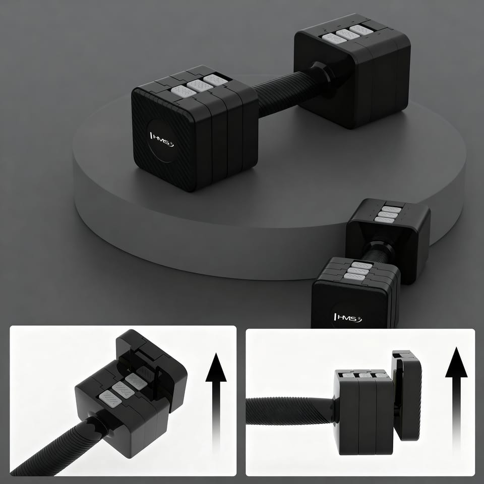 HL02 HANTLE REGULOWANE BLACK 2 x 5 KG HMSPodkręć trening fitness dzięki HL02 HMS – to regulowane hantle 2 × 5 kg z błyskawiczną, parosekundową zmianą wagi, antypoślizgową rękojeścią i stabilnym, kwadratowym kształtem. Jedna para zastępuje pięć par klasycznych hantli – oszczędzasz miejsce, czas i pieniądze.Dlaczego HL02? Szybka regulacja – naciśnij przycisk, dołóż/odejmij segment i trenuj dalej. Zakres 1,36–5 kg na sztukę – idealny do cardio, fitnessu, ćwiczeń siłowych i rehabilitacji. Kwadratowe głowice (anty-roll) – hantle nie toczą się po podłodze; sprawdzą się także jako podpory przy pompkach. Komfortowy, antypoślizgowy chwyt – prążkowana rękojeść zapewnia pewność nawet przy dynamicznych seriach. Trwała obudowa ABS – odporna na uderzenia, cicha w kontakcie z podłogą. Regulacja ciężaru – 5 poziomówUstawienia wagi pojedynczej ciężarków HL02: 1,36 kg 2,27 kg 3,18 kg 4,09 kg 5,00 kg Segmentowe wkłady dodajesz lub odejmujesz parę sekund, bez klipsów i talerzy – to najszybszy sposób na progresję obciążenia w trakcie serii.Komfort i bezpieczeństwoErgonomiczny uchwyt z antypoślizgową fakturą, trwała powłoka ABS i mechanizm blokujący segmenty gwarantują pewny chwyt i bezpieczną pracę. Kwadratowe końcówki zwiększają stabilność przy odkładaniu hantli i podczas ćwiczeń w podporze.Do jakich ćwiczeń? Trening ramion, barków, klatki i pleców. HIIT, cardio, pilates, joga, aerobik. Domowa siłownia, rozgrzewka i ćwiczenia uzupełniające. To uniwersalne hantelki regulowane dla kobiet i mężczyzn – od początkujących po średniozaawansowanych. Specyfikacja: Wymiary w zależności od wagi (rozmiar głowicy stały 9x9 cm): 1,36 kg – długość 16,2 cm 2,27 kg – długość 20,5 cm 3,18 kg – długość 24,3 cm 4,09 kg – długość 28,1 cm 5 kg – długość 31,9 cm Ilość: 2 sztuki Waga całkowita zestawu: 10 kg Średnica części chwytnej: 3,3 cm Kształt: kwadrat Materiał: galwanizowane żelazo + ABS Uwagi: Nie przeznaczona do użytku komercyjnego Gwarancja 24 miesiące Importer: Abisal Sp. z o.o.| Polska | 41-807 Zabrze | ul. Pyskowicka 17 | e-mail: abisal@abisal.plAbisal Sp. z o.o. deklaruje, iż produkty sprzedawane przez firmę są bezpieczne i spełniają wymagania zawarte w Ustawie o ogólnym bezpieczeństwie produktów z dnia 12 grudnia 2003r. (Dz.U. z dnia 31 grudnia 2003r.)