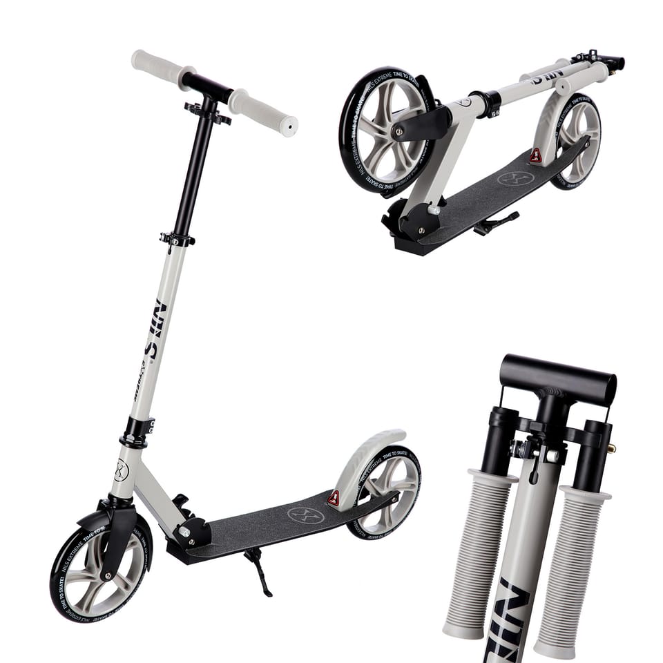 Hulajnoga miejska HM2009 marki Nils Extreme to połączenie wytrzymałości i stylu, stworzona z myślą o codziennej miejskiej mobilności. Model przeznaczony jest dla dzieci, młodzieży oraz dorosłych. Została wykonana z najwyższej jakości materiałów, co czyni ją trwałą oraz lekką. Hulajnoga świetnie sprawdzi się zarówno do rekreacyjnej jazdy po asfalcie, na betonowych nawierzchniach jak i wybrukowanych chodnikach. Kierownica została wyposażona w gumowe rączki, które zapewniają pewność chwytu. 3-stopniowa regulacja pozwoli na dopasowanie jej wysokości do wzrostu użytkownika. Natomiast łożyska klasy ABEC7 oraz duże kółka (200mm) podnoszą stabilność i płynność jazdy, a szeroki podest ułatwi zachowanie równowagi. Dodatkowo hamulec nożny zapewni maksymalne bezpieczeństwo podczas jazdy. Model HM2009 można złożyć w łatwy oraz szybki sposób co ułatwia transport i przechowywanie w domu czy biurze.HM2009 to idealny wybór dla aktywnych osób, które szukają niezawodnego i stylowego środka transportu. Specyfikacja: Materiał: Stal, aluminium, guma Składana: tak Wymiary po złożeniu: Długość: 75 cm Szerokość: 11,5 cm Wysokość: 32 cm Łożyska: ABEC7 Kółka: PU 200mm/82A Stopka: tak Wyposażona w hamulec nożny Zakres regulacji kierownicy: 75 cm - 95 cm Wymiary po rozłożeniu: Długość: 87 cm Szerokość: 39,5 cm Wysokość: 95 cm Wymiary podestu: Długość: 52 cm Szerokość: 11,5 cm Maksymalna waga użytkownika: 100 kg Waga produktu: 3,9 kg Uwagi: Nie przeznaczona do użytku komercyjnego Zgodna z normą PN-EN 14619:2015 Gwarancja 24 miesiące Importer: Abisal Sp. z o.o.| Polska | 41-807 Zabrze | ul. Pyskowicka 17 | e-mail: abisal@abisal.plAbisal Sp. z o.o. deklaruje, iż produkty sprzedawane przez firmę są bezpieczne i spełniają wymagania zawarte w Ustawie o ogólnym bezpieczeństwie produktów z dnia 12 grudnia 2003r. (Dz.U. z dnia 31 grudnia 2003r.)
