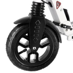 HM208T Nils Extreme to hulajnoga przeznaczona dla dzieci, młodzieży oraz dorosłych. Cechą charakterystyczną produktu marki Nils Extreme są dwa amortyzatory - przedni pionowy oraz tylny poziomy. Zapewniają one większy komfort podczas jazdy, minimalizują drgania oraz pochłaniają wstrząsy. Dzięki temu produkt bardzo dobrze sprawdzi się podczas przemieszczania się po nierównych powierzchniach. Hulajnoga wykonana została z aluminium, dzięki czemu jest bardzo lekka oraz wytrzymała. Kierownica wyposażona jest w uchwyty pokryte gumą, która zapewnia pewny chwyt oraz nie powoduje otarć. Duże koła i łożyska klasy ABEC9 podnoszą stabilność oraz płynność jazdy. Ponad to, koła są pompowane, co znacznie poszerza horyzonty, względem nawierzchni po której możemy się przemieszczać. Nierówny teren, nie będzie problemem. Hulajnoga posiada dodatkowy ręczny hamulec tarczowy umieszczony na tylnym kole. Dzięki niemu otrzymujemy dużo większą, niż w przypadku klasycznego nożnego hamulca, siłę hamowania. Umieszczenie go na kierownicy sprawia, że jest on dużo bardziej intuicyjny niż hamulec nożny, jest także dużo szybszy w użyciu. A co najważniejsze zastosowanie takiego rozwiązania powoduje bezpieczeństwo jazdy, nawet po mokrej nawierzchni. Dodatkowo zamontowane błotniki zapobiegają ochlapaniu. HM208T, świetnie sprawdzi się na nawierzchniach asfaltowych, jak również w terenie. Specyfikacja: Materiał: Aluminium Rodzaj materiału na podeście: Aluminium Łożyska: ABEC9 Kółka: 200 mm pompowane Wyposażona w hamulec tarczowy Składana: tak Stopka: tak Wymiary po rozłożeniu: Długość: 96 cm Szerokość: 40 cm Wysokość: 82 – 105 cm Wymiary po złożeniu: Długość: 86 cm Szerokość: 13 cm Wysokość 32 cm Wymiary podestu: Długość: 34 cm Szerokość: 13cm Maksymalna waga użytkownika: 100kg Waga produktu: 5,5 kg Uwagi: Nie przeznaczona do użytku komercyjnego Zgodna z normą PN-EN 14619:2019 Gwarancja 24 miesiące Importer: Abisal Sp. z o.o.| Polska | 41-807 Zabrze | ul. Pyskowicka 17 | e-mail: abisal@abisal.plAbisal Sp. z o.o. deklaruje, iż produkty sprzedawane przez firmę są bezpieczne i spełniają wymagania zawarte w Ustawie o ogólnym bezpieczeństwie produktów z dnia 12 grudnia 2003r. (Dz.U. z dnia 31 grudnia 2003r.)