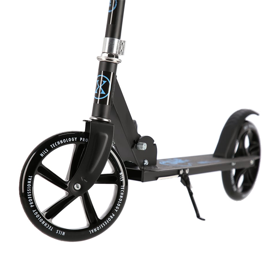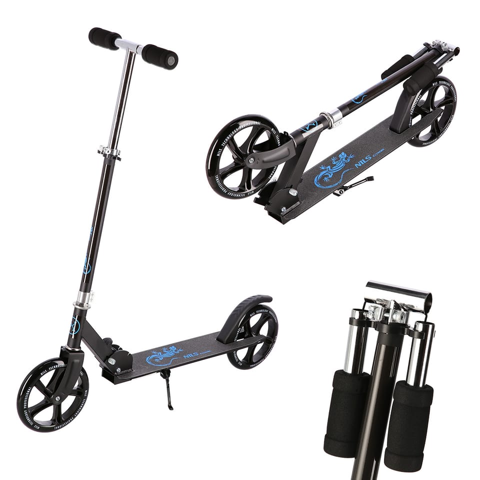 HM603 Nils Extreme to model hulajnogi przeznaczony dla każdego miłośnika jazdy rekreacyjnej. Jej niewątpliwą zaletą jest oryginalny design. HM603 wykonana została z aluminium, dlatego jest bardzo lekka oraz wytrzymała. Pozwoli to na użytkowanie sprzętu przez bardzo długi czas, a dzięki małej wadze nie będzie problemu z jej transportem. Tym bardziej, że hulajnogę można w bardzo prosty i szybki sposób złożyć.. Hulajnoga posiada bardzo wygodne, piankowe rączki, które gwarantują pewny chwyt oraz nie powodują otarć, dzięki czemu można cieszyc się jazdą przez długie godziny. HM603 wyposażona jest w dużę koła, które pozwalają na sprawne manewrowanie hulajnogą i łatwiejsze pokonywanie nierówności. Natomiast łożyska klasy ABEC7 podnoszą stabilność oraz płynność jazdy. To wyszystko skłąda się na wysoki komfort użytkowania i radość z jazdy. Dodatkowo opcja trzy stopniowej regulacji kierownicy daje możłiwość dopasowania sprzętu pod indywidualne potrzeby. HM603 Nils Extreme świetnie sprawdzi się zarówno do rekreacyjnej jazdy po asfalcie, na betonowych nawierzchniach oraz wybrukowanych chodnikach. Specyfikacja: Materiał: Aluminium, stal Rodzaj materiału na podeście: Aluminium Łożyska: ABEC7 Kółka: 200 mm/82A Składana: tak Stopka: tak Hamulec: tak nożny Wymiary po rozłożeniu: Długość: 96 cm Szerokość: 36 cm Wysokość: 76 – 102 cm Wymiary po złożeniu: Długość: 83 cm Szerokość: 13,5 cm Wysokość 31 cm Wymiary podestu: Długość: 57 cm Szerokość: 13,5 cm Maksymalna waga użytkownika: 100kg Waga produktu: 5,5 kg Uwagi: Nie przeznaczona do użytku komercyjnego Zgodna z normą PN-EN 14619:2015 Gwarancja 24 miesiące Importer: Abisal Sp. z o.o.| Polska | 41-807 Zabrze | ul. Pyskowicka 17 | e-mail: abisal@abisal.plAbisal Sp. z o.o. deklaruje, iż produkty sprzedawane przez firmę są bezpieczne i spełniają wymagania zawarte w Ustawie o ogólnym bezpieczeństwie produktów z dnia 12 grudnia 2003r. (Dz.U. z dnia 31 grudnia 2003r.)