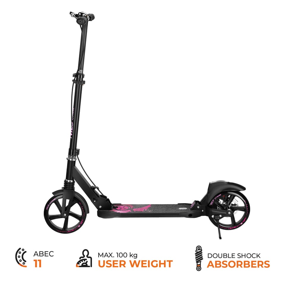 HM800 FLY RÓŻOWA NILS EXTREME to hulajnoga rekreacyjna zaprojektowana z myślą o dzieciach i młodzieży, które szukają stabilnej, komfortowej jazdy oraz swobody poruszania się na co dzień. Model z serii FLY łączy nowoczesny design z funkcjonalnymi rozwiązaniami, zapewniając przyjemność z jazdy na różnych nawierzchniach.Duże koła o średnicy 200 mm sprawiają, że hulajnoga prowadzi się pewnie i płynnie, zarówno na asfalcie, jak i na chodniku czy kostce brukowej. Stabilna konstrukcja wykonana z połączenia stali i aluminium zwiększa trwałość i bezpieczeństwo użytkowania, jednocześnie zachowując odpowiednią lekkość.Model HM800 FLY został wyposażony w płynną regulację wysokości kierownicy w zakresie 84–98 cm, co pozwala łatwo dopasować hulajnogę do wzrostu użytkownika. To rozwiązanie sprawia, że hulajnoga dobrze sprawdza się na różnych etapach rozwoju i może towarzyszyć przez więcej niż jeden sezon.Za bezpieczeństwo jazdy odpowiada podwójny system hamowania – tylny hamulec nożny oraz hamulec tarczowy uruchamiany z poziomu kierownicy. Antypoślizgowy podest z chropowatą powierzchnią zapewnia pewne oparcie stóp i lepszą kontrolę podczas jazdy.Miękkie, gumowe rączki poprawiają komfort chwytu, a łożyska ABEC-11 odpowiadają za płynne toczenie i spokojną, stabilną jazdę. Składana konstrukcja umożliwia szybkie złożenie hulajnogi, co ułatwia transport i przechowywanie.Wersja FLY RÓŻOWA wyróżnia się lekką, dynamiczną stylistyką inspirowaną swobodą i ruchem. Kolorystyka oraz motyw graficzny podkreślają charakter serii FLY i są spójne wizualnie z dedykowanymi kaskami oraz ochraniaczami tej linii, które można dokupić osobno. Specyfikacja: Model: HM800 FLYKolor: różowyMateriał: stal / aluminiumŁożyska: ABEC-11Koła: 200 mmMateriał kół: PU + tworzywoPodest: antypoślizgowy Wymiary podestu: 45 x 14 cmRegulacja wysokości kierownicy: 84–98 cmHamulec: tylny nożny + tarczowy z klamkąSkładana konstrukcja: takMaksymalne obciążenie: 100 kgWymiary po rozłożeniu: 90 x 36 x 84–98 cmWymiary po złożeniu: 81 x 32 x 19 cmWaga: 5,9 kg Uwagi: Nie przeznaczona do użytku komercyjnegoZgodna z normą PN-EN 14619:2015Gwarancja: 24 miesiące Importer: Abisal Sp. z o.o.| Polska | 41-807 Zabrze | ul. Pyskowicka 17 | e-mail: abisal@abisal.plAbisal Sp. z o.o. deklaruje, iż produkty sprzedawane przez firmę są bezpieczne i spełniają wymagania zawarte w Ustawie o ogólnym bezpieczeństwie produktów z dnia 12 grudnia 2003r. (Dz.U. z dnia 31 grudnia 2003r.)