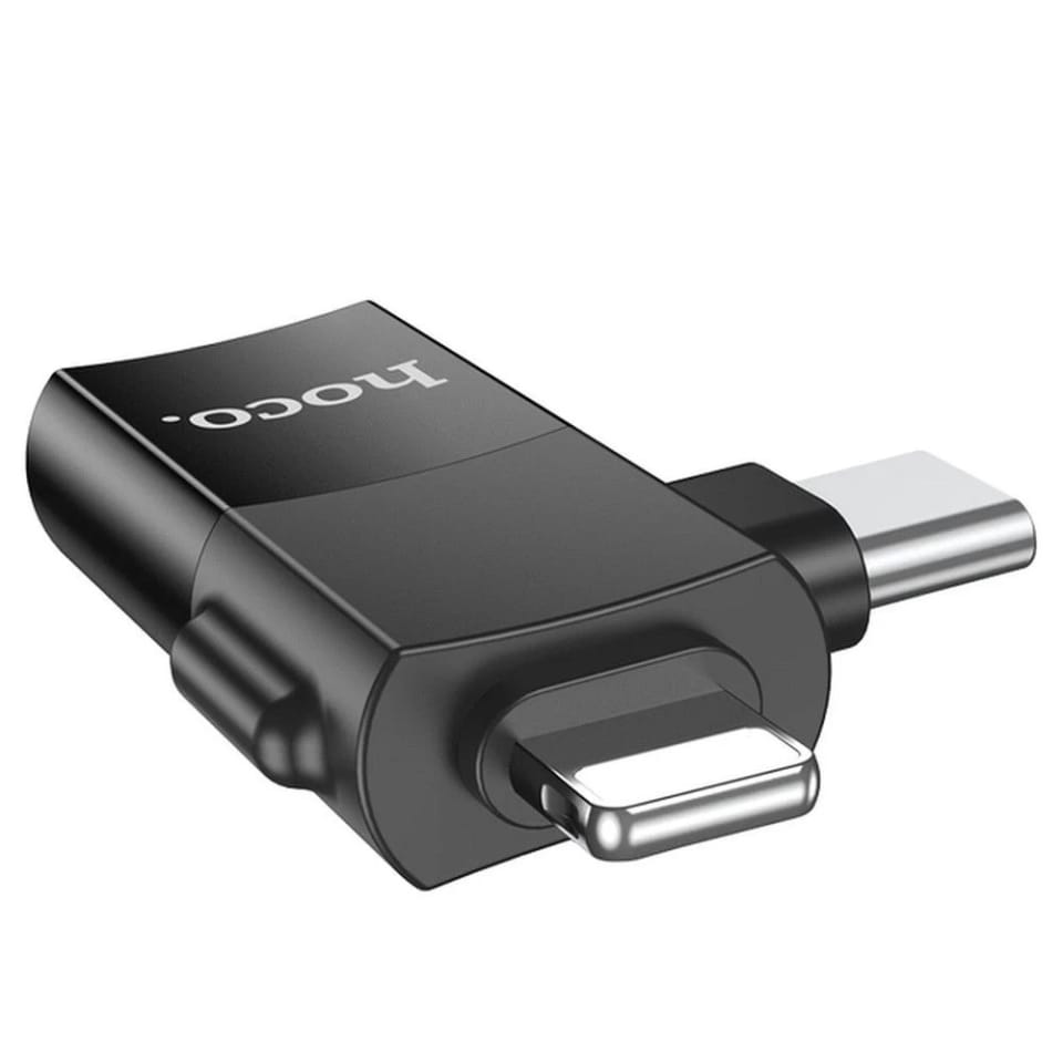 HOCO Adapter OTG Typ C (Męski) / Lightning (Męski) Do USB A (Żeński) 2w1 UA17 Czarny