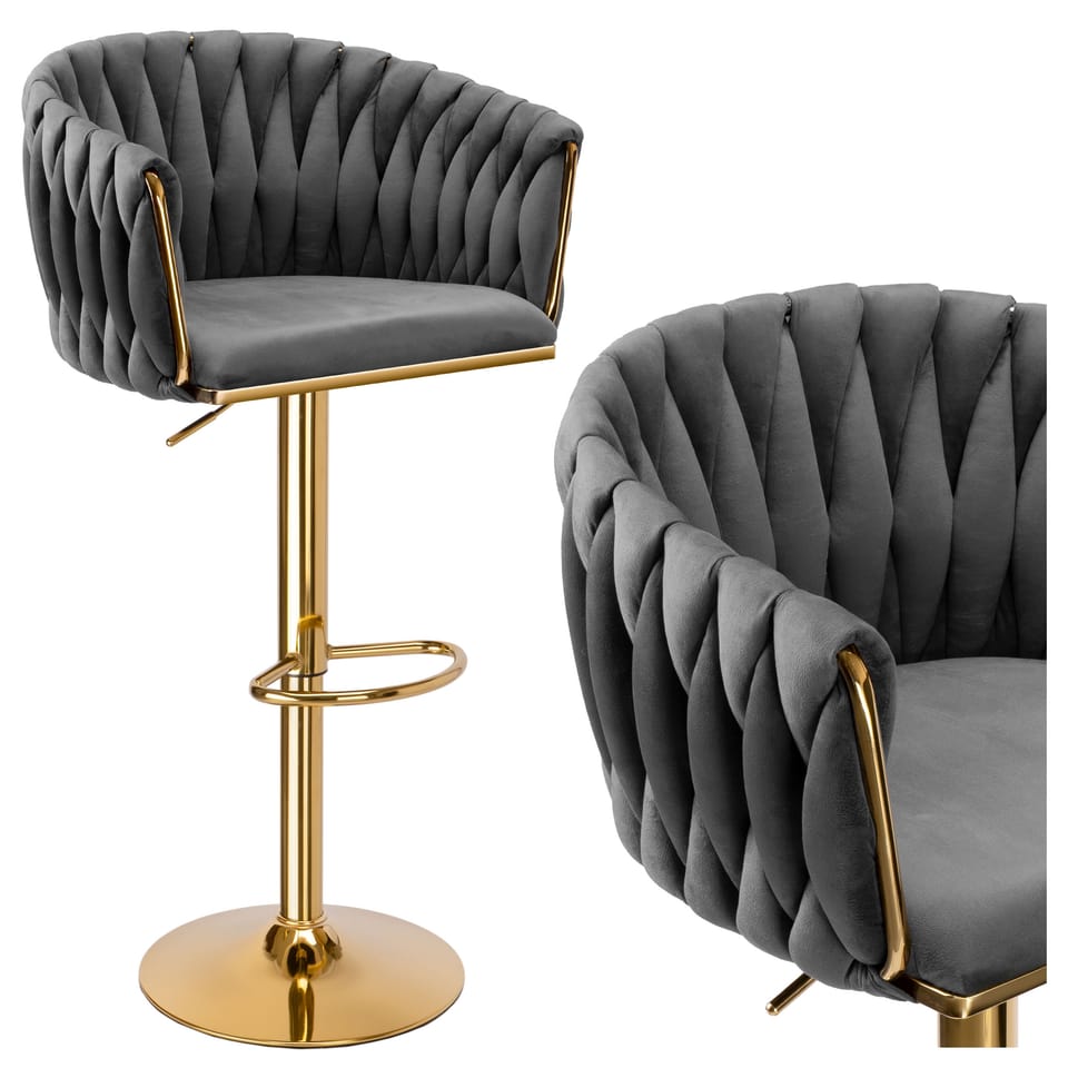 Hoker barowy Cofton Gold grafitowy Velvet⭐️ Miękkie, welurowe siedzisko⭐️ Stylowe oparcie z przeplatanych warkoczy⭐️ Połyskująca noga w złotym kolorze⭐️ Maksymalne obciążenie 120 kg⭐️ Zakup od producenta✨Hoker welurowy Cofton Gold grafitowy - Luksus do Twojej kuchni✨☑️ Kolor: GrafitowyStylowy hoker welurowy Cofton Gold w kolorze grafitowym to połączenie elegancji, komfortu i funkcjonalności. Idealny do nowoczesnych kuchni, wysp kuchennych czy stylowych barów domowych. Dzięki miękkiej tapicerce z weluru oraz solidnej, złotej podstawie, zapewnia wygodę podczas siedzenia i dodaje wnętrzu luksusowego charakteru.Cechy:Materiał siedziska: welurMateriał konstrukcji: stal malowana proszkowo na złoty kolorKolor tapicerki: grafitowyKolor nogi i podstawy: złoty, połyskObrót siedziska: 360°Regulacja wysokościWymiary:Maksymalna wysokość: 107 cmMinimalna wysokość: 86 cmMaksymalna wysokość siedziska: 81 cmMinimalna wysokość siedziska: 60 cmŚrednica podstawy: 42 cmŚrednica teleskopowego podnośnika: 55 mmGłębokość siedziska: 41 cmSzerokość siedziska: 41 cmSzerokość oparcia: 54 cmWysokość od siedziska do oparcia: 28 cm Informacje dodatkowePrzedstawione kolory należy traktować poglądowo - mogą odbiegać od rzeczywistych ze względu na różne ustawienia monitorów oraz proces obróbki zdjęć. Rzeczywiste wymiary mogą się różnić od podanych wyżej. Tolerancja błędów może wynosić +/- 5%.Marka:eHokeryKod produktu:069648MGKod EAN:5905523069648Kolor:grafitowyWysokość:107 cmSzerokość siedziska:41 cmMateriał siedziska:welurMateriał podstawy:stal malowana proszkowo na złoty kolorPrzeznaczenie:jadalnia | kuchnia | salon | biuroDo samodzielnego montażu:tak