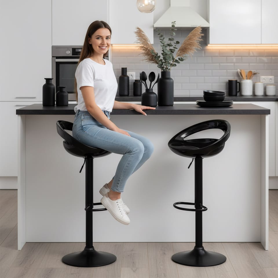 Hoker krzesło barowe nowoczesne styl glamourModel: CORK | Kolor: czarny⭐️ Solidne materiały⭐️ Wygodne siedzisko⭐️ Regulacja wysokości⭐️ Dopuszczalne obciążenie 120 kg⭐️ Zakup bezpośrednio od producenta Nowoczesny oraz wygodny hoker z profilowanym oparciem podnoszącym komfort użytkowania. Włoski design sprawdzi się w każdym pomieszczeniu. Świetnie nadają się do nowoczesnych kuchni, restauracji, barów, ekskluzywnych sklepów, salonów kosmetycznych/fryzjerskich, eleganckich biur, stoisk na targach, punktów informacyjnych. Kupując u nas, kupujesz od bezpośredniego producenta! Cechy produktu✅Wygodna rączka do regulacji wysokości siedzenia✅Ergonomiczna podpórka pod nogi✅Czas potrzebny na złożenie: 1-2 min✅Antypoślizgowa podstawa✅Obrotowy 360 stopni✅Regulacja wysokości✅Siedzisko z mocnego tworzywa ABS✅Noga i podstawa w kolorze czarny mat✅Siedzisko wykończone na wysoki połysk Wymiary produktuMaksymalna wysokość: 97 cmMinimalna wysokość: 77 cmMaksymalna wysokość siedziska: 80Minimalna wysokość siedziska: 60 cmGłębokość całkowita hokera: 42 cmŚrednica podstawy: 38 cmSzerokość podnóżka: 28 cmŚrednica teleskopowego podnośnika: 5 cmGłębokość siedziska: 32 cmGłębokość siedziska całkowita: 40 cmSzerokość siedziska: 40 cmSzerokość siedziska całkowita 46 cmWysokość oparcia: 20 cm Informacje dodatkowePrzedstawione kolory należy traktować poglądowo - mogą odbiegać od rzeczywistych ze względu na różne ustawienia monitorów oraz proces obróbki zdjęć. Rzeczywiste wymiary mogą się różnić od podanych wyżej. Tolerancja błędów może wynosić +/- 5%.UWAGA | Na siłowniku znajduję się zabezpieczenie (czarny korek), który należy zdjąć przez założeniem siedziska. Marka:eHokeryKod produktu:324264MGKod EAN:5902340324264Kolor:czarnyWysokość: 77-97 cmSzerokość siedziska:46 cmMateriał siedziska:absMateriał podstawy:metalPrzeznaczenie:jadalnia | kuchnia | salon | biuro | restauracja | barDo samodzielnego montażu:tak