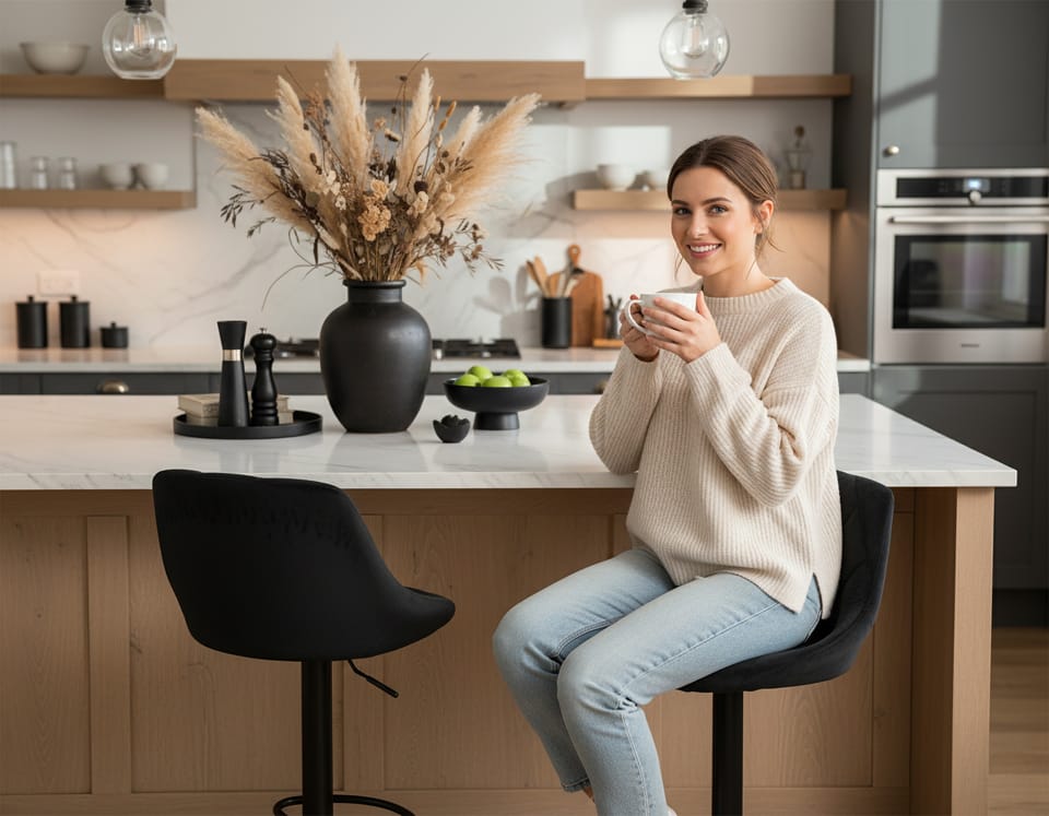 Hoker barowy Cydro Black czarne VelvetModel: CYDRO BLACK | Kolor: czarny⭐ Tapicerowane obicie⭐ Geometryczne pikowane przeszycia⭐ Regulowana wysokość⭐ Dopuszczalna waga 120 kg⭐️ Zakup bezpośrednio od producenta Włoski design hokera Cydro cieszy się wciąż niesłabnącą popularnością. Nic dziwnego- idealnie profilowane oparcie i komfortowe siedzisko zapewniają bardzo wygodne użytkowanie. Podstawa kryje teleskopowy podnośnik i rączkę, którymi łatwo dostosujemy wysokość hokera do naszych potrzeb. Oferujemy gwarancję producenta - 24 miesiące. Cechy produktu✅Siedzisko obite welurem / aksamitem✅Podstawa i siłownik w czarnym matowym kolorze✅Regulacja wysokości✅Obrotowy 360 stopni✅Antypoślizgowa podstawa✅Ergonomiczna podpórka pod nogi✅Wygodna rączka do regulacji wysokości siedzenia✅Czas potrzebny na złożenie: 1-2 minWymiary produktuMaksymalna wysokość do oparcia: 105 cmMinimalna wysokość do oparcia: 85 cmMaksymalna wysokość do siedziska: 82 cmMinimalna wysokość do siedziska: 62 cmSzerokość siedziska: 47 cmGłębokość siedziska: 37 cmWysokość oparcia: 27 cmŚrednica podstawy 38 cmŚrednica teleskopowego podnośnika: 50 mm Informacje dodatkowePrzedstawione kolory należy traktować poglądowo - mogą odbiegać od rzeczywistych ze względu na różne ustawienia monitorów oraz proces obróbki zdjęć. Rzeczywiste wymiary mogą się różnić od podanych wyżej. Tolerancja błędów może wynosić +/- 5%.UWAGA | Na siłowniku znajduję się zabezpieczenie (czarny korek), który należy zdjąć przez założeniem siedziska. Marka:eHokeryKod produktu:5902340320372Kod EAN:5902340320372Kolor:czarnyWysokość: 105 cmSzerokość siedziska:47 cmMateriał siedziska:aksamitMateriał podstawy:metalPrzeznaczenie:jadalnia | kuchnia | salon | biuro | restauracja | barDo samodzielnego montażu:tak