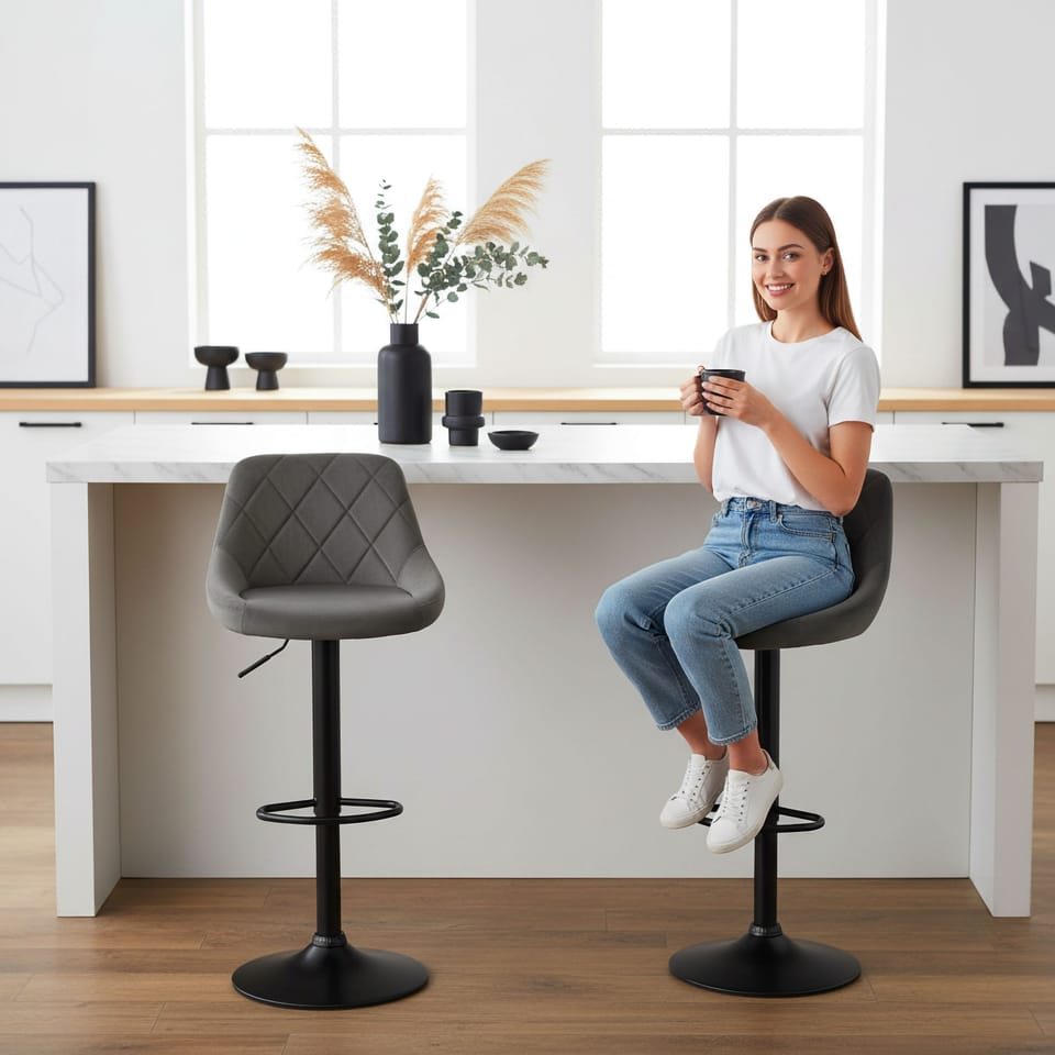 Hoker barowy CYDRO BLACK grafitowy VelvetModel: CYDRO BLACK | Kolor: grafitowy⭐ Tapicerowane, welurowe obicie⭐ Geometryczne pikowane przeszycia⭐ Regulowana wysokość⭐ Dopuszczalna waga 120 kg⭐️ Zakup bezpośrednio od producentaWłoski design hokera Cydro cieszy się wciąż niesłabnącą popularnością. Nic dziwnego- idealnie profilowane oparcie i komfortowe siedzisko zapewniają bardzo wygodne użytkowanie. Podstawa kryje teleskopowy podnośnik i rączkę, którymi łatwo dostosujemy wysokość hokera do naszych potrzeb. Oferujemy gwarancję producenta - 24 miesiące. Cechy produktu✅Siedzisko obite welurem / aksamitem✅Podstawa i siłownik w czarnym matowym kolorze✅Regulacja wysokości✅Obrotowy 360 stopni✅Antypoślizgowa podstawa✅Ergonomiczna podpórka pod nogi✅Wygodna rączka do regulacji wysokości siedzenia✅Czas potrzebny na złożenie: 1-2 minWymiary produktuMaksymalna wysokość do oparcia: 105 cmMinimalna wysokość do oparcia: 85 cmMaksymalna wysokość do siedziska: 82 cmMinimalna wysokość do siedziska: 62 cmSzerokość siedziska: 47 cmGłębokość siedziska: 37 cmWysokość oparcia: 27 cmŚrednica podstawy 38 cmŚrednica teleskopowego podnośnika: 50 mm Informacje dodatkowePrzedstawione kolory należy traktować poglądowo - mogą odbiegać od rzeczywistych ze względu na różne ustawienia monitorów oraz proces obróbki zdjęć. Rzeczywiste wymiary mogą się różnić od podanych wyżej. Tolerancja błędów może wynosić +/- 5%.UWAGA | Na siłowniku znajduję się zabezpieczenie (czarny korek), który należy zdjąć przez założeniem siedziska. Marka:eHokeryKod produktu:5902340320389Kod EAN:5902340320389Kolor:grafitowyWysokość: 105 cmSzerokość siedziska:47 cmMateriał siedziska:aksamitMateriał podstawy:metalPrzeznaczenie:jadalnia | kuchnia | salon | biuro | restauracja | barDo samodzielnego montażu:tak