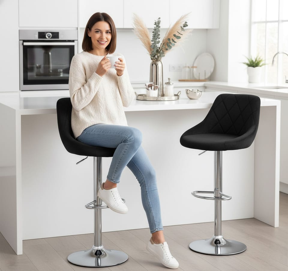 Hoker barowy Cydro chromowane czarne VelvetModel: CYDRO | Kolor: czarny⭐ Tapicerowane, welurowe obicie⭐ Geometryczne pikowane przeszycia⭐ Regulowana wysokość⭐ Dopuszczalna waga 120 kg⭐️ Zakup bezpośrednio od producenta Włoski design hokera Cydro cieszy się wciąż niesłabnącą popularnością. Nic dziwnego- idealnie profilowane oparcie i komfortowe siedzisko zapewniają bardzo wygodne użytkowanie. Podstawa kryje teleskopowy podnośnik i rączkę, którymi łatwo dostosujemy wysokość hokera do naszych potrzeb. Oferujemy gwarancję producenta - 24 miesiące.✅Ciekawe geometryczne przeszycia - Hoker Cydro wyróżnia się nie tylko wygodą i elegancją, lecz także oryginalnym wzorem na siedzisku, gdzie ciekawe geometryczne przeszycia tworzą pikowane romby, które nadają mu wyjątkowego charakteru. Te detale sprawiają, że hoker prezentuje się niezwykle efektownie, będąc idealnym dodatkiem do nowoczesnych wnętrz.✅Tapicerowany miękkim welurem - Welurowa tapicerka wysokiej jakości zapewnia przyjemne, miękkie doznania podczas użytkowania. Dzięki swojej luksusowej fakturze dodaje wnętrzu elegancji i wyrafinowanego stylu.✅Chromowane elementy - Chromowane elementy dodają Hokerowi Cydro nowoczesnego charakteru oraz eleganckiego wykończenia, co sprawia, że jest on wyjątkowo atrakcyjnym elementem wystroju wnętrza. Ich połyskująca powierzchnia efektownie kontrastuje z welurową tapicerką, nadając całej konstrukcji ekskluzywnego i nowoczesnego wyglądu.✅Regulacja wysokości - Hoker Cydro oferuje najnowocześniejszy siłownik, umożliwiający płynną regulację wysokości siedziska, zapewniając użytkownikowi optymalne dopasowanie do preferowanej pozycji. Ta funkcjonalność gwarantuje niezwykłą wygodę, umożliwiając jednocześnie dostosowanie hokera do różnych wysokości blatów.✅Obrotowy 360° - Hoker Cydro zapewnia pełną swobodę ruchu dzięki obrotowej konstrukcji, umożliwiając użytkownikowi obrót o 360 stopni. Ta funkcjonalność pozwala na łatwe poruszanie się wokół stołu czy baru bez konieczności podnoszenia czy przesuwania całego hokera. Cechy produktu✅Siedzisko obite welurem / aksamitem✅Podstawa i siłownik w chromowanym kolorze✅Regulacja wysokości✅Obrotowy 360 stopni✅Antypoślizgowa podstawa✅Ergonomiczna podpórka pod nogi✅Wygodna rączka do regulacji wysokości siedzenia✅Czas potrzebny na złożenie: 1-2 minWymiary produktuMaksymalna wysokość do oparcia: 105 cmMinimalna wysokość do oparcia: 85 cmMaksymalna wysokość do siedziska: 82 cmMinimalna wysokość do siedziska: 62 cmSzerokość siedziska: 47 cmGłębokość siedziska: 37 cmWysokość oparcia: 27 cmŚrednica podstawy 38 cmŚrednica teleskopowego podnośnika: 50 mm Informacje dodatkowePrzedstawione kolory należy traktować poglądowo - mogą odbiegać od rzeczywistych ze względu na różne ustawienia monitorów oraz proces obróbki zdjęć. Rzeczywiste wymiary mogą się różnić od podanych wyżej. Tolerancja błędów może wynosić +/- 5%.UWAGA | Na siłowniku znajduję się zabezpieczenie (czarny korek), który należy zdjąć przez założeniem siedziska. Marka:eHokeryKod produktu:062755MGKod EAN:5905523062755Kolor siedziska:czarnyWysokość: 105 cmSzerokość siedziska:47 cmMateriał siedziska:aksamitMateriał podstawy:metalPrzeznaczenie:jadalnia | kuchnia | salon | biuroRegulowana wysokość:tak