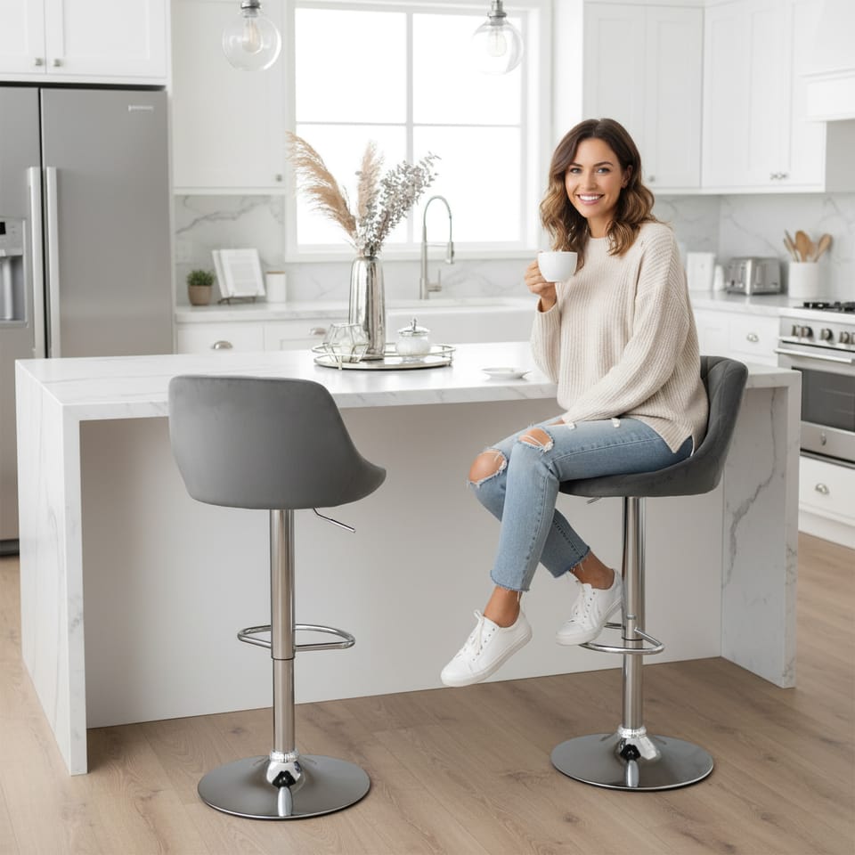 Hoker barowy Cydro chromowane grafitowe VelvetModel: CYDRO | Kolor: grafitowy⭐ Tapicerowane, welurowe obicie⭐ Geometryczne pikowane przeszycia⭐ Metalowe nogi z ochronnymi podkładkami⭐ Dopuszczalna waga 120 kg⭐️ Zakup bezpośrednio od producenta Włoski design hokera Cydro cieszy się wciąż niesłabnącą popularnością. Nic dziwnego- idealnie profilowane oparcie i komfortowe siedzisko zapewniają bardzo wygodne użytkowanie. Podstawa kryje teleskopowy podnośnik i rączkę, którymi łatwo dostosujemy wysokość hokera do naszych potrzeb. Oferujemy gwarancję producenta - 24 miesiące. ✅Ciekawe geometryczne przeszycia - Hoker Cydro wyróżnia się nie tylko wygodą i elegancją, lecz także oryginalnym wzorem na siedzisku, gdzie ciekawe geometryczne przeszycia tworzą pikowane romby, które nadają mu wyjątkowego charakteru. Te detale sprawiają, że hoker prezentuje się niezwykle efektownie, będąc idealnym dodatkiem do nowoczesnych wnętrz.✅Tapicerowany miękkim welurem - Welurowa tapicerka wysokiej jakości zapewnia przyjemne, miękkie doznania podczas użytkowania. Dzięki swojej luksusowej fakturze dodaje wnętrzu elegancji i wyrafinowanego stylu.✅Chromowane elementy - Chromowane elementy dodają Hokerowi Cydro nowoczesnego charakteru oraz eleganckiego wykończenia, co sprawia, że jest on wyjątkowo atrakcyjnym elementem wystroju wnętrza. Ich połyskująca powierzchnia efektownie kontrastuje z welurową tapicerką, nadając całej konstrukcji ekskluzywnego i nowoczesnego wyglądu.✅Regulacja wysokości - Hoker Cydro oferuje najnowocześniejszy siłownik, umożliwiający płynną regulację wysokości siedziska, zapewniając użytkownikowi optymalne dopasowanie do preferowanej pozycji. Ta funkcjonalność gwarantuje niezwykłą wygodę, umożliwiając jednocześnie dostosowanie hokera do różnych wysokości blatów.✅Obrotowy 360° - Hoker Cydro zapewnia pełną swobodę ruchu dzięki obrotowej konstrukcji, umożliwiając użytkownikowi obrót o 360 stopni. Ta funkcjonalność pozwala na łatwe poruszanie się wokół stołu czy baru bez konieczności podnoszenia czy przesuwania całego hokera. Cechy produktu✅Siedzisko obite welurem / aksamitem✅Podstawa i siłownik w chromowanym kolorze✅Regulacja wysokości✅Obrotowy 360 stopni✅Antypoślizgowa podstawa✅Ergonomiczna podpórka pod nogi✅Wygodna rączka do regulacji wysokości siedzenia✅Czas potrzebny na złożenie: 1-2 minWymiary produktuMaksymalna wysokość do oparcia: 105 cmMinimalna wysokość do oparcia: 85 cmMaksymalna wysokość do siedziska: 82 cmMinimalna wysokość do siedziska: 62 cmSzerokość siedziska: 47 cmGłębokość siedziska: 37 cmWysokość oparcia: 27 cmŚrednica podstawy 38 cmŚrednica teleskopowego podnośnika: 50 mm Informacje dodatkowePrzedstawione kolory należy traktować poglądowo - mogą odbiegać od rzeczywistych ze względu na różne ustawienia monitorów oraz proces obróbki zdjęć. Rzeczywiste wymiary mogą się różnić od podanych wyżej. Tolerancja błędów może wynosić +/- 5%.UWAGA | Na siłowniku znajduję się zabezpieczenie (czarny korek), który należy zdjąć przez założeniem siedziska. Marka:eHokeryKod produktu:5902340320389Kod EAN:5902340320389Kolor:grafitowyWysokość: 105 cmSzerokość siedziska:47 cmMateriał siedziska:aksamitMateriał podstawy:metalPrzeznaczenie:jadalnia | kuchnia | salon | biuro | restauracja | barRegulowana wysokość:tak