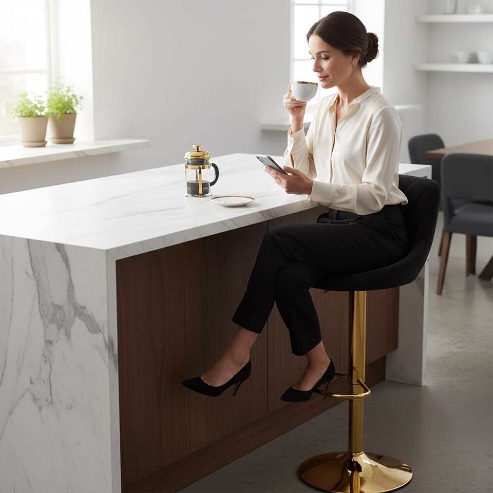 Hoker barowy Cydro Gold czarne VelvetModel: Cydro Gold | Kolor: Czarny Velvet ✅ Hoker obrotowy 360°✅ Ergonomiczna podpórka pod nogi✅ Możliwość regulacji wysokości✅ Welurowe, aksamitne siedzisko✅ Geometryczne, pikowane przeszycia✏️ Specyfikacja:Wygodna rączka do regulacji wysokościWygodny podnóżekAntypoślizgowa podstawaObrotowy 360 stopni✏️ Wymiary:Maksymalna wysokość do oparcia: 105 cmMinimalna wysokość do oparcia: 85 cmMaksymalna wysokość do siedziska: 82 cmMinimalna wysokość do siedziska: 62 cmSzerokość siedziska: 47 cmGłębokość siedziska: 37 cmWysokość oparcia: 27 cmŚrednica podstawy: 38 cmŚrednica teleskopowego podnośnika: 50 mm Marka:eHokeryKod produktu:069433MGKod EAN:5905523069433Kolor:czarnyWysokość: 105 cmSzerokość siedziska:47 cmMateriał siedziska:aksamitMateriał podstawy:metalPrzeznaczenie:jadalnia | kuchnia | salon | biuro | restauracja | barDo samodzielnego montażu:tak