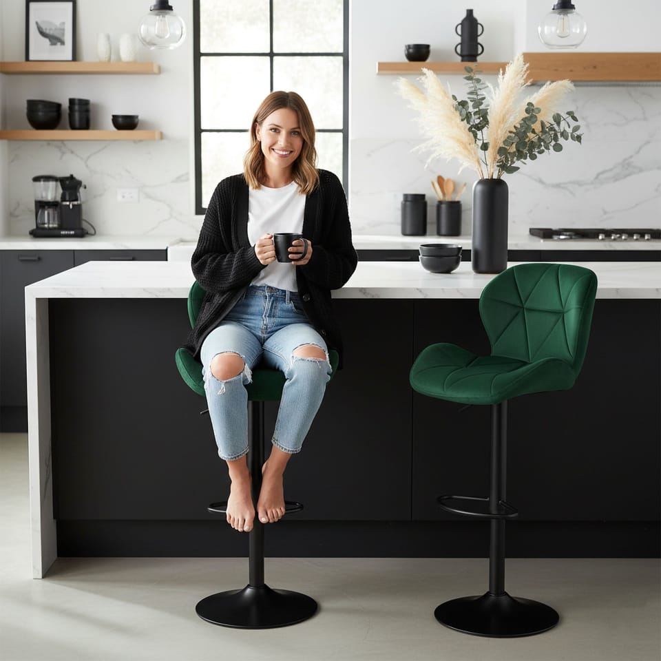Hoker barowy Gordon Black ciemnozielony VelvetPrzeznaczenie: kuchnia, bar, punkt informacyjny, salon | Kolor: ciemnozielony⭐ Tapicerowane, welurowe obicie⭐ Ciekawe przeszycia⭐ Regulowana wysokość⭐ Dopuszczalna waga 120 kg⭐️ Zakup bezpośrednio od producenta Nowoczesny oraz wygodny hoker z profilowanym oparciem podnoszącym komfort użytkowania. Włoski design sprawdzi się w każdym pomieszczeniu. Świetnie nadają się do nowoczesnych kuchni, restauracji, barów, ekskluzywnych sklepów, salonów kosmetycznych/fryzjerskich, eleganckich biur, stoisk na targach, punktów informacyjnych. Kupując u nas, kupujesz od bezpośredniego producenta! Cechy produktu✅Siedzisko obite welurem / aksamitem✅Chromowane elementy✅Regulacja wysokości✅Obrotowy 360 stopni✅Antypoślizgowa podstawa✅Ergonomiczna podpórka pod nogi✅Wygodna rączka do regulacji wysokości siedzenia✅Czas potrzebny na złożenie: 1-2 min Wymiary produktuMaksymalna wysokość do oparcia: 106 cmMinimalna wysokość do oparcia: 85 cmMaksymalna wysokość do siedziska: 75 cmMinimalna wysokość do siedziska: 54 cmSzerokość siedziska: 46 cmGłębokość siedziska: 35 cmWysokość oparcia: 30 cmŚrednica podstawy 38 cmŚrednica teleskopowego podnośnika: 50 mm Informacje dodatkowePrzedstawione kolory należy traktować poglądowo - mogą odbiegać od rzeczywistych ze względu na różne ustawienia monitorów oraz proces obróbki zdjęć. Rzeczywiste wymiary mogą się różnić od podanych wyżej. Tolerancja błędów może wynosić +/- 5%.UWAGA | Na siłowniku znajduję się zabezpieczenie (czarny korek), który należy zdjąć przez założeniem siedziska. Marka:eHokeryKod produktu:5902340322420Kod EAN:5902340322420Kolor:ciemnozielonyWysokość: 106 cmSzerokość siedziska:46 cmMateriał siedziska:aksamitMateriał podstawy:metalPrzeznaczenie:jadalnia | kuchnia | salon | biuro | restauracja | barDo samodzielnego montażu:tak