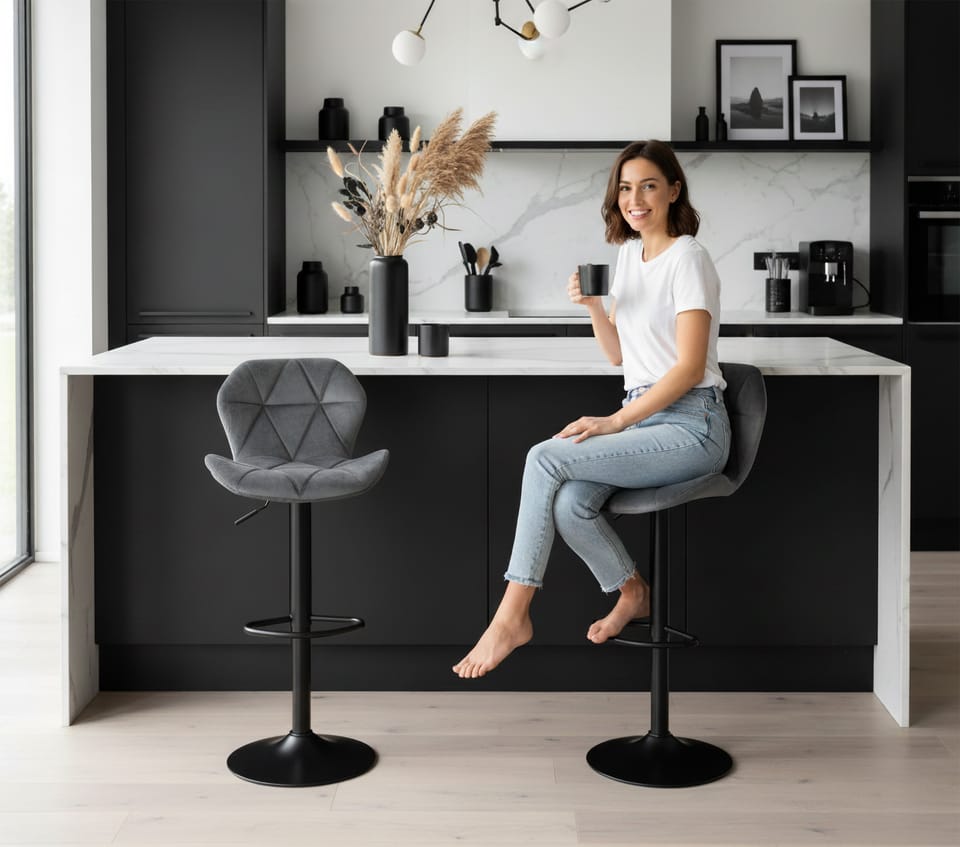 Hoker barowy Gordon Black grafitowy VelvetModel: GORDON BLACK | Kolor: grafitowy⭐ Tapicerowane, welurowe obicie⭐ Ciekawe przeszycia⭐ Regulowana wysokość⭐ Dopuszczalna waga 120 kg⭐️ Zakup bezpośrednio od producenta Nowoczesny oraz wygodny hoker z profilowanym oparciem podnoszącym komfort użytkowania. Włoski design sprawdzi się w każdym pomieszczeniu. Świetnie nadają się do nowoczesnych kuchni, restauracji, barów, ekskluzywnych sklepów, salonów kosmetycznych/fryzjerskich, eleganckich biur, stoisk na targach, punktów informacyjnych. Kupując u nas, kupujesz od bezpośredniego producenta! Cechy produktu✅Siedzisko obite welurem / aksamitem✅Czarne elementy✅Regulacja wysokości✅Obrotowy 360 stopni✅Antypoślizgowa podstawa✅Ergonomiczna podpórka pod nogi✅Wygodna rączka do regulacji wysokości siedzenia✅Czas potrzebny na złożenie: 1-2 min Wymiary produktuMaksymalna wysokość do oparcia: 106 cmMinimalna wysokość do oparcia: 85 cmMaksymalna wysokość do siedziska: 75 cmMinimalna wysokość do siedziska: 54 cmSzerokość siedziska: 46 cmGłębokość siedziska: 35 cmWysokość oparcia: 30 cmŚrednica podstawy 38 cmŚrednica teleskopowego podnośnika: 50 mm Informacje dodatkowePrzedstawione kolory należy traktować poglądowo - mogą odbiegać od rzeczywistych ze względu na różne ustawienia monitorów oraz proces obróbki zdjęć. Rzeczywiste wymiary mogą się różnić od podanych wyżej. Tolerancja błędów może wynosić +/- 5%.UWAGA | Na siłowniku znajduję się zabezpieczenie (czarny korek), który należy zdjąć przez założeniem siedziska. Marka:eHokeryKod produktu:5902340320358Kod EAN:5902340320358Kolor:grafitowyWysokość: 106 cmSzerokość siedziska:46 cmMateriał siedziska:aksamitMateriał podstawy:metalPrzeznaczenie:jadalnia | kuchnia | salon | biuro | restauracja | barRegulowana wysokość:tak
