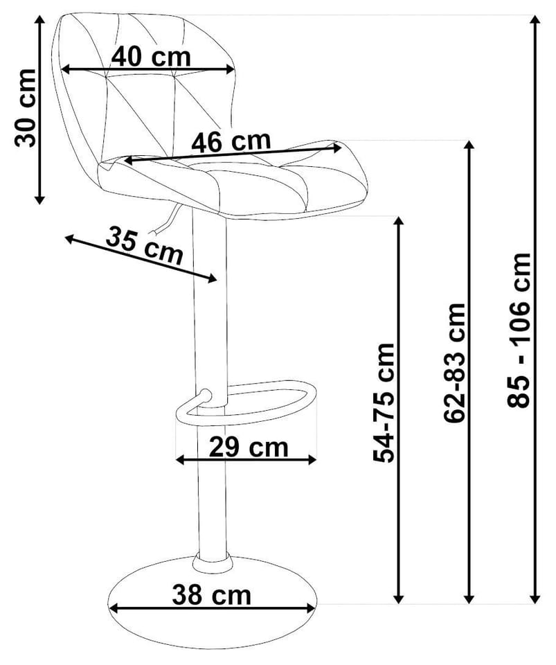 Hoker barowy Gordon czarnyModel: GORDON | Kolor: czarny⭐ Obicie tapicerowane ekoskórą⭐ Ciekawe przeszycia⭐ Regulowana wysokość⭐ Dopuszczalna waga 120 kg⭐️ Zakup bezpośrednio od producenta Nowoczesny oraz wygodny hoker z profilowanym oparciem podnoszącym komfort użytkowania. Włoski design sprawdzi się w każdym pomieszczeniu. Świetnie nadają się do nowoczesnych kuchni, restauracji, barów, ekskluzywnych sklepów, salonów kosmetycznych/fryzjerskich, eleganckich biur, stoisk na targach, punktów informacyjnych. Kupując u nas, kupujesz od bezpośredniego importera! Cechy produktuSiedzisko tapicerowane z ekoskóryChromowane elementyAntypoślizgowa podstawaRegulacja wysokościObrotowy 360 stopni Wymiary produktuMaksymalna wysokość do oparcia: 106 cmMinimalna wysokość do oparcia: 85 cmMaksymalna wysokość do siedziska: 75 cmMinimalna wysokość do siedziska: 54 cmSzerokość siedziska: 46 cmGłębokość siedziska: 35 cmWysokość oparcia: 30 cmŚrednica podstawy 38 cmŚrednica teleskopowego podnośnika: 50 mm Informacje dodatkowePrzedstawione kolory należy traktować poglądowo - mogą odbiegać od rzeczywistych ze względu na różne ustawienia monitorów oraz proces obróbki zdjęć. Rzeczywiste wymiary mogą się różnić od podanych wyżej. Tolerancja błędów może wynosić +/- 5%. Marka:eHokeryKod produktu:HOKER GORDON CZARNYKod EAN:5902340311264Kolor:czarnyWysokość: 106 cmSzerokość:46 cmMateriał siedziska:skóra ekologicznaMateriał podstawy:metalPrzeznaczenie:jadalnia | kuchnia | salon | biuro | restauracja | barDo samodzielnego montażu:tak