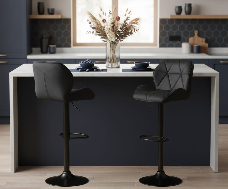Hoker barowy Grappo Black czarny VelvetPrzeznaczenie: kuchnia, punkt informacyjny, salon kosmetyczny | Kolor: czarny⭐ Tapicerowane, welurowe obicie⭐ Ciekawe przeszycia⭐ Regulowana wysokość⭐ Dopuszczalna waga 120 kg⭐️ Zakup bezpośrednio od producenta Bardzo elegancki, wygodny i stabilny hoker, wykonany z materiałów najwyższej jakości. Stabilna podstawa w kolorze czarnego matu i unikatowy wzór siedziska tworzą doskonałe połączenie.Hoker doskonale dopełni wnętrza w stylu loftowym, nowoczesnym i glamour.✅Ciekawe geometryczne przeszycia - Hoker Grappo wyróżnia się nie tylko wygodą i elegancją, lecz także oryginalnym wzorem na siedzisku, gdzie ciekawe geometryczne przeszycia tworzą pikowane romby, które nadają mu wyjątkowego charakteru. Te detale sprawiają, że hoker prezentuje się niezwykle efektownie, będąc idealnym dodatkiem do nowoczesnych wnętrz.✅Tapicerowany miękkim welurem - Welurowa tapicerka wysokiej jakości zapewnia przyjemne, miękkie doznania podczas użytkowania. Dzięki swojej luksusowej fakturze dodaje wnętrzu elegancji i wyrafinowanego stylu.✅Czarne elementy - Czarne elementy dodają hokerowi nowoczesnego charakteru oraz eleganckiego wykończenia, co sprawia, że jest on wyjątkowo atrakcyjnym elementem wystroju wnętrza. Ich połyskująca powierzchnia efektownie kontrastuje z welurową tapicerką, nadając całej konstrukcji ekskluzywnego i nowoczesnego wyglądu.✅Regulacja wysokości - Hoker Grappo oferuje najnowocześniejszy siłownik, umożliwiający płynną regulację wysokości siedziska, zapewniając użytkownikowi optymalne dopasowanie do preferowanej pozycji. Ta funkcjonalność gwarantuje niezwykłą wygodę, umożliwiając jednocześnie dostosowanie hokera do różnych wysokości blatów.✅Obrotowy 360° - Hoker Grappo zapewnia pełną swobodę ruchu dzięki obrotowej konstrukcji, umożliwiając użytkownikowi obrót o 360 stopni. Ta funkcjonalność pozwala na łatwe poruszanie się wokół stołu czy baru bez konieczności podnoszenia czy przesuwania całego hokera. Cechy produktuPodstawa i siłownik w czarnym matowym kolorzeWygodna rączka do regulacji wysokości siedzeniaErgonomiczna podpórka pod nogiCzas potrzebny na złożenie: 1-2 minAntypoślizgowa podstawaObrotowy 360 stopniRegulacja wysokościWymiary produktuMaksymalna wysokość: 107 cmMaksymalna wysokość siedziska: 82 cmŚrednica podstawy 38 cmŚrednica teleskopowego podnośnika: 50 mmMinimalna wysokość siedziska: 60 cmMinimalna wysokość: 86 cm Informacje dodatkowePrzedstawione kolory należy traktować poglądowo - mogą odbiegać od rzeczywistych ze względu na różne ustawienia monitorów oraz proces obróbki zdjęć. Rzeczywiste wymiary mogą się różnić od podanych wyżej. Tolerancja błędów może wynosić +/- 5%. Marka:eHokeryKod produktu:5902340320471Kod EAN:5902340320471Kolor:czarnyWysokość całkowita: 86-107 cmWysokość do siedziska:60- 82 cmSzerokość siedziska:46 cmŚrednica podnośnika:5 cm