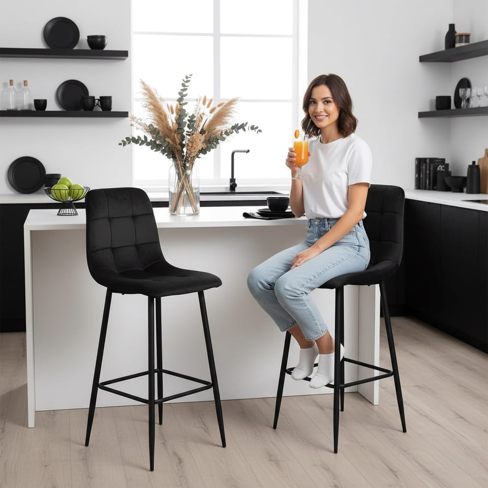 Hoker barowy Hamilton czarny VelvetPrzeznaczenie: kuchnia, punkt informacyjny, salon kosmetyczny | Kolory: czarny⭐ Tapicerowane, welurowe obicie⭐ Ciekawe przeszycia⭐ Dopuszczalna waga 120 kg⭐️ Zakup od producenta Bardzo elegancki, wygodny i stabilny hoker, wykonany z materiałów najwyższej jakości. Stabilna podstawa w kolorze czarnego matu i unikatowy wzór siedziska tworzą doskonałe połączenie.Hoker doskonale dopełni wnętrza w stylu loftowym, nowoczesnym i glamour. Cechy produktu✅Materiał siedziska: welur✅Materiał stelaża: stal malowana proszkowo✅Wykończenie stelaża: czarny mat✅Waga: 5,40 kg✅Maksymalne obciążenie 120 kg✅Ergonomiczna podpórka pod nogi✅Komfortowe oparcie✅Ochronne podkładki pod nogami✅Pikowane siedzisko✅Nowoczesny design✅Styl: loftowy, industrialny Wymiary produktuWysokość całkowita 110 cmGłębokość całkowita 50 cmSzerokość całkowita 43 cmWysokość oparcia 37 cmSzerokość oparcia 37 - 43 cmSzerokość siedziska 43 cmGłębokość siedziska 38 cmWysokość do siedziska 76 cmWysokość podnóżka 28 cmRozstaw nóg 43 x 43 cm Informacje dodatkowePrzedstawione kolory należy traktować poglądowo - mogą odbiegać od rzeczywistych ze względu na różne ustawienia monitorów oraz proces obróbki zdjęć. Rzeczywiste wymiary mogą się różnić od podanych wyżej. Tolerancja błędów może wynosić +/- 5%. Marka:eHokeryKod produktu:324288MGKod EAN:5902340324288Kolor:czarnyWysokość całkowita: 110 cmWysokość do siedziska:76 cmSzerokość siedziska:43 cmSzerokość całkowita:43 cm
