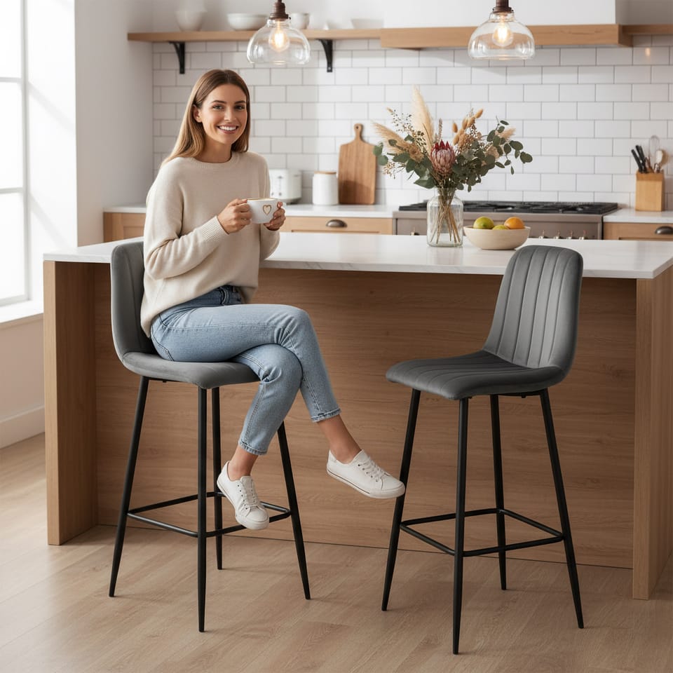 Hoker barowy Toronto grafitowy VelvetPrzeznaczenie: kuchnia, punkt informacyjny, salon kosmetyczny | Kolory: grafitowy⭐ Tapicerowane, welurowe obicie⭐ Ciekawe przeszycia⭐ Ochronne podkładki pod nogami⭐ Dopuszczalna waga 120 kg⭐️ Zakup bezpośrednio od producenta Bardzo elegancki, wygodny i stabilny hoker, wykonany z materiałów najwyższej jakości. Stabilna podstawa w kolorze czarnego matu i unikatowy wzór siedziska tworzą doskonałe połączenie.Hoker doskonale dopełni wnętrza w stylu loftowym, nowoczesnym i glamour. Cechy produktu✅Materiał siedziska: welur✅Materiał stelaża: stal malowana proszkowo✅Wykończenie stelaża: czarny mat✅Waga: 5,40 kg✅Maksymalne obciążenie 120 kg✅Ergonomiczna podpórka pod nogi✅Komfortowe oparcie✅Ochronne podkładki pod nogami✅Pikowane siedzisko✅Nowoczesny design✅Styl: loftowy, industrialnyWymiary produktuWysokość całkowita 110 cmGłębokość całkowita 50 cmSzerokość całkowita 43 cmWysokość oparcia 37 cmSzerokość oparcia 37 - 42 cmSzerokość siedziska 42 cmGłębokość siedziska 38 cmWysokość do siedziska 77 cmWysokość podnóżka 28 cmRozstaw nóg 43 x 43 cm Informacje dodatkowePrzedstawione kolory należy traktować poglądowo - mogą odbiegać od rzeczywistych ze względu na różne ustawienia monitorów oraz proces obróbki zdjęć. Rzeczywiste wymiary mogą się różnić od podanych wyżej. Tolerancja błędów może wynosić +/- 5%. Marka:eHokeryKod produktu:324318MGKod EAN:5902340324318Kolor:grafitowyWysokość całkowita: 110 cmWysokość do siedziska:77 cmSzerokość siedziska:42 cmSzerokość całkowita:43 cm