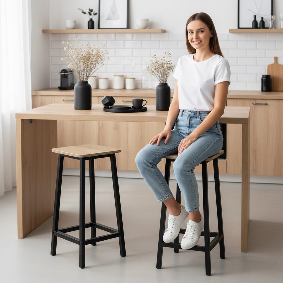 Hoker Kent Modern Oak industrialPrzeznaczenie: kuchnia, bar | Kolory: czarny mat, siedzisko modern oak⭐️ Solidne materiały⭐️ Stabilna konstrukcja⭐️ Nowoczesny design⭐️ Dopuszczalne obciążenie 120 kg⭐️ Zakup od producenta Bardzo elegancki, wygodny i stabilny hoker, wykonany z materiałów najwyższej jakości. Stabilna podstawa w kolorze czarnego matu i unikatowy wzór siedziska w kolorze postarzanego dębu tworzą doskonałe połączenie.Hoker doskonale dopełni wnętrza w stylu loftowym, retro, rustykalnym oraz japandi. Cechy produktu✅Wytrzymałe materiały: Wykonanie z połączenia stali malowanej proszkowo i płyty laminowanej gwarantuje trwałość i odporność na uszkodzenia.✅Estetyka: Łączy w sobie style vintage, loft i industrial, oferując wyjątkowy design pasujący do różnorodnych wnętrz.✅Atrakcyjny wygląd: Czarny kolor stali w połączeniu z jasnym odcieniem dębu modern oak tworzy elegancką i nowoczesną estetykę.✅Solidna budowa: Grubość płyty wynosząca 15 mm i profili 25 mm zapewnia stabilność i wytrzymałość konstrukcji.✅Wysoka nośność: Maksymalne równomierne obciążenie do 120 kg pozwala na bezpieczne użytkowanie przez osoby o różnej wadze.✅Lekkość: Waga stołka wynosząca jedynie 3,3 kg ułatwia przenoszenie i zmianę jego położenia w przestrzeni.✅Stabilność: Mocna konstrukcja zapewnia stabilność, minimalizując ryzyko przewrócenia się podczas użytkowania.Wymiary produktuWysokość: 65 cmSzerokość: 32 cmGłębokość: 32 cm Informacje dodatkowePrzedstawione kolory należy traktować poglądowo - mogą odbiegać od rzeczywistych ze względu na różne ustawienia monitorów oraz proces obróbki zdjęć. Rzeczywiste wymiary mogą się różnić od podanych wyżej. Tolerancja błędów może wynosić +/- 5%.UWAGA |Podczas montażu zwróć uwagę na długość śrub. Opakowania ze śrubami mogą być błędnie oznaczone. Marka:LoftInspiredKod produktu:062823MGKod EAN:5905523062823Kolor:modern oakWysokość całkowita: 65 cmWysokość do podnóżka:14,5 cmSzerokość siedziska:32 cmSzerokość całkowita:32 cm