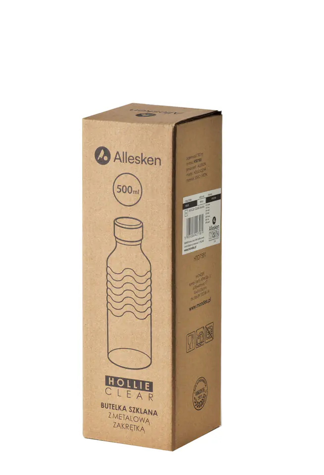 Butelka HOLLIE CLEAR marki Allesken.Nasza szklana butelka o pojemności 1,15l to idealny sposób na przechowywanie Twoich ulubionych napojów. Wykonana z wytrzymałego szkła sodowego, butelka z pewnością posłuży Ci przez wiele lat. Szeroki otwór ułatwia napełnianie i czyszczenie, a dołączony korek pomaga zachować świeżość napojów. Niezależnie od tego, czy używasz jej do wody, soku czy napoju gazowanego, nasza szklana butelka jest idealnym wyborem.pojemność: 500mlwymiary: 4,5x6,5xh22,5cmwaga:346g