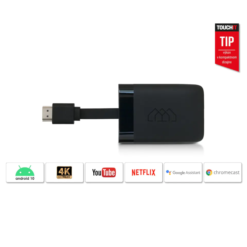 Homatics DONGLE Q odtwarzacz multimedialny 4K na rynku w kompaktowej obudowie, który obsługuje smart TV. Systemem operacyjnym, który góruje nad podobnymi urządzeniami jest oficjalny, licencjonowany Android TV. To niewielkie urządzenie skrywa potężny procesor Amlogic S905Y2, który obsługuje do 2 GB pamięci RAM DDR i 8 GB pamięci eMMC Flash. Zawiera Google Voice Assistant, preinstalowany YouTube, Netflix, Google Play Store, Prime Video, wbudowany chromecast i obsługuje najczęściej używane aplikacje, takie jak KODI, HBO GO, Televio, Polsat Box, WP Pilot i inne. Pilot służy również jako mikrofon dla Google Voice Assistant.