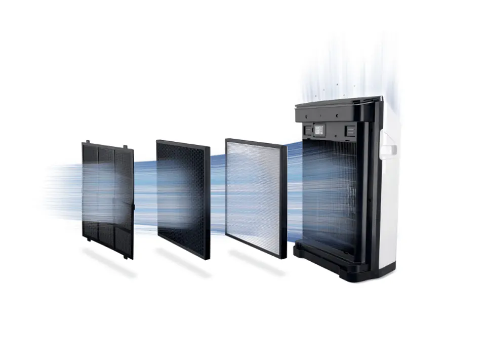 Domowy oczyszczacz powietrza z filtrem HEPA Inteligentny oczyszczacz z kolorowym czujnikiem jakości powietrza Inteligentny czujnik jakości powietrza, sprawdza jakość powietrza i automatycznie reguluje wydajność oczyszczacza. Czy wiesz, że powietrze w pomieszczeniu może być do 10 razy bardziej zanieczyszczone niż powietrze na zewnątrz? (według WHO) Nasze wysoce skuteczne oczyszczacze powietrza HEPA firmy Honeywell wychwytują do 99,97% mikroskopijnych cząstek (o wielkości 0,3 mikrona i więcej). Wysokiej jakości filtr powietrza niezawodnie filtruje pleśń, zarodniki, pyłki, kurz, dym i inne zawieszone cząsteczki z powietrza (filtr HEPA). Redukuje nieprzyjemne zapachy w gospodarstwach domowych oraz gazy (filtr wstępny). Elektroniczny timer: 2-4-8h 5 poziomów oczyszczania (whisper silent, germs, general, allergens, turbo) CADR: 187 m3/h Clean Air Delivery Rate (CADR) jest standardem oceny ustalonym przez niezależne Stowarzyszenie Producentów Sprzętu Gospodarstwa Domowego. Cyrkulacja powietrza w pomieszczeniach: Oczyszczacz cyrkuluje całe powietrze (wymienia powietrze) w pomieszczeniu w ciągu godziny z częstotliwością: 10x w przypadku mniejszych pomieszczeń, 5,5x dla średnich pomieszczeń, 2,7x dla dużych pomieszczeń Jonizator Jonizator usprawnia proces oczyszczania powietrza. Łatwa kontrola filtra Wskaźnik kontroli filtra elektronicznego pomaga użytkownikowi i pokazuje, kiedy należy wymienić filtry. Cisza w Twoim domu Ten oczyszczacz powietrza firmy Honeywell jest cichy w działaniu.