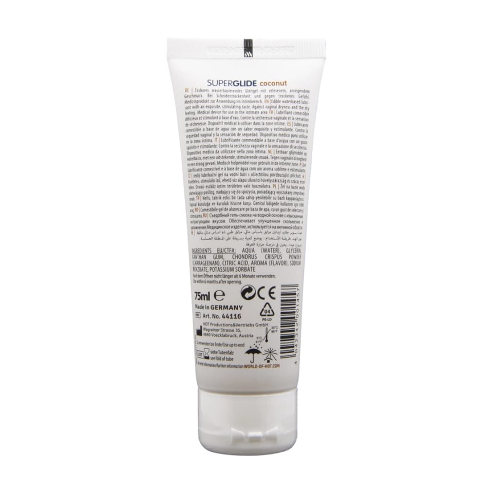HOT Superglide Waterbased Edible to wysokiej jakości żel intymny na bazie wody o pojemności 75 ml, stworzony z myślą o użytkownikach poszukujących komfortu, delikatności oraz bezpieczeństwa. Produkt zawiera wyłącznie składniki dopuszczone do kontaktu z żywnością, dzięki czemu jest w pełni spożywczy i może być wykorzystywany podczas rożnych aktywności. Dostępny w pięciu wyselekcjonowanych smakach, żel doskonale sprawdzi się jako wsparcie podczas kontaktu intymnego oraz masażu. Jego lekka, nieklejąca się formuła zapewnia długotrwałą warstwę poślizgową oraz łatwość w zmywaniu wodą.